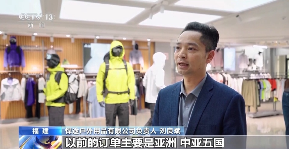 在福建省晋江市,一家户外用品企业的新款运动服即将运往英国。企业负责人表示,近一年来订单增长40%,海外新客户拓展势头良好。