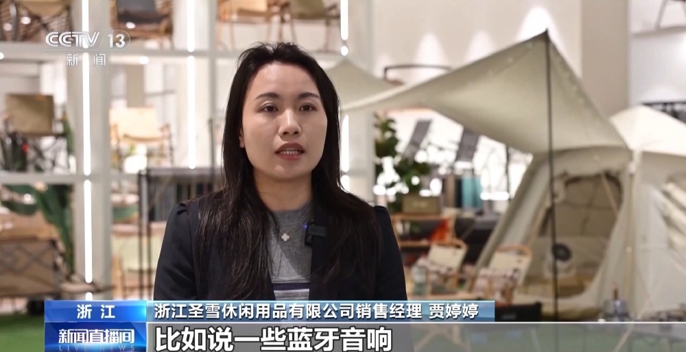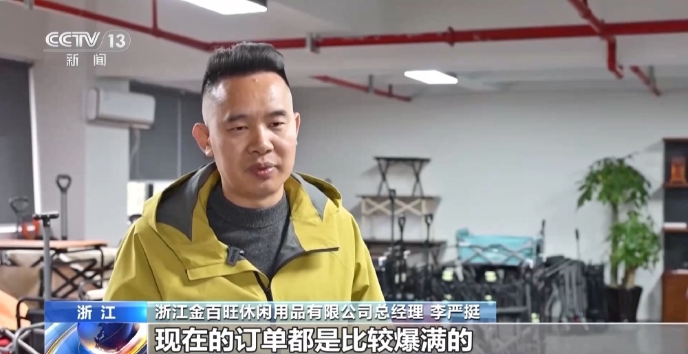 浙江某休闲用品有限公司销售经理 贾婷婷:比如说一些蓝牙音响、智能的氛围灯以及智能化的推车,消费者也是更愿意为这些体验升级而去买单的。订单已经排产到7月份了,2025年的出口额是达到了一个亿左右美金。