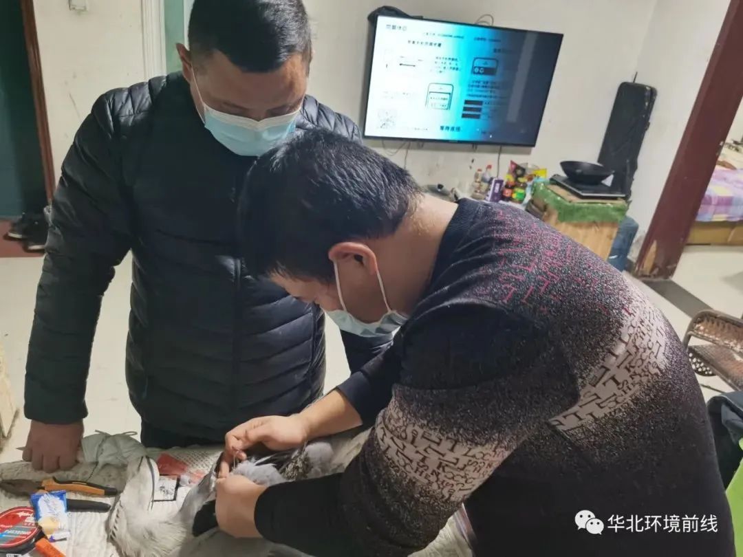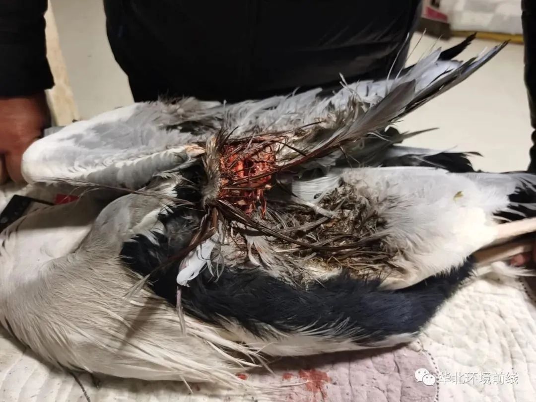 苍鹭被接回石家庄市野生动物救护站后,兽医连夜开始检查治疗。苍鹭受伤严重,翅膀粉碎性骨折,翅膀上部还有一个被钢珠打穿的洞,钢珠进入苍鹭体内,腹部大面积淤血,手术之后,苍鹭最终因伤势过重而死亡。