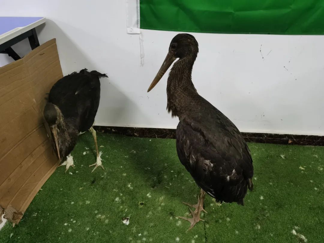 两只黑鹳,一只康复,一只终生停飞。【文中未注明图片均由受访者提供】