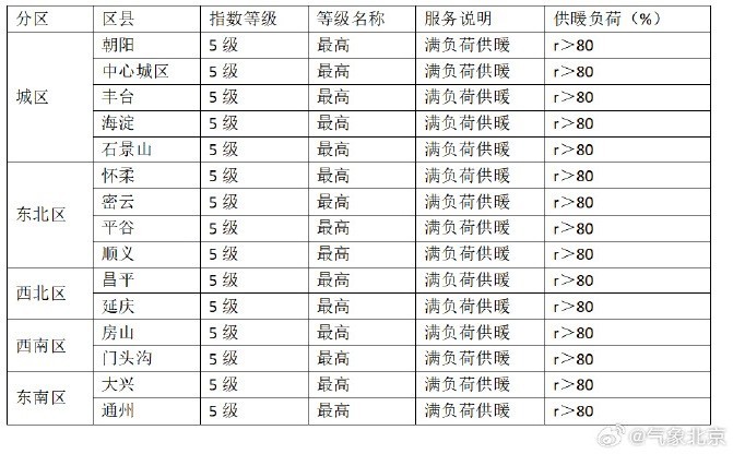 供暖气象指数(等级)预报