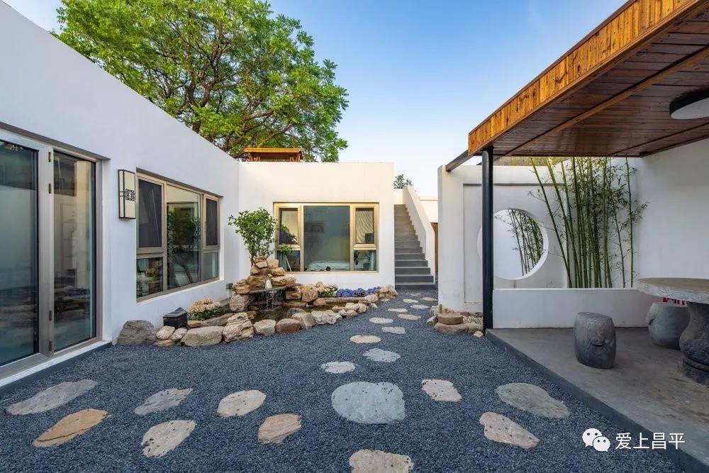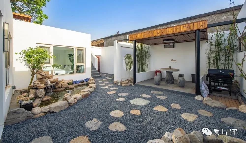 走进这个新中式的院子,小巧而雅致。在这里可以听风声、水声,让人暂时远离尘世的喧嚣。
