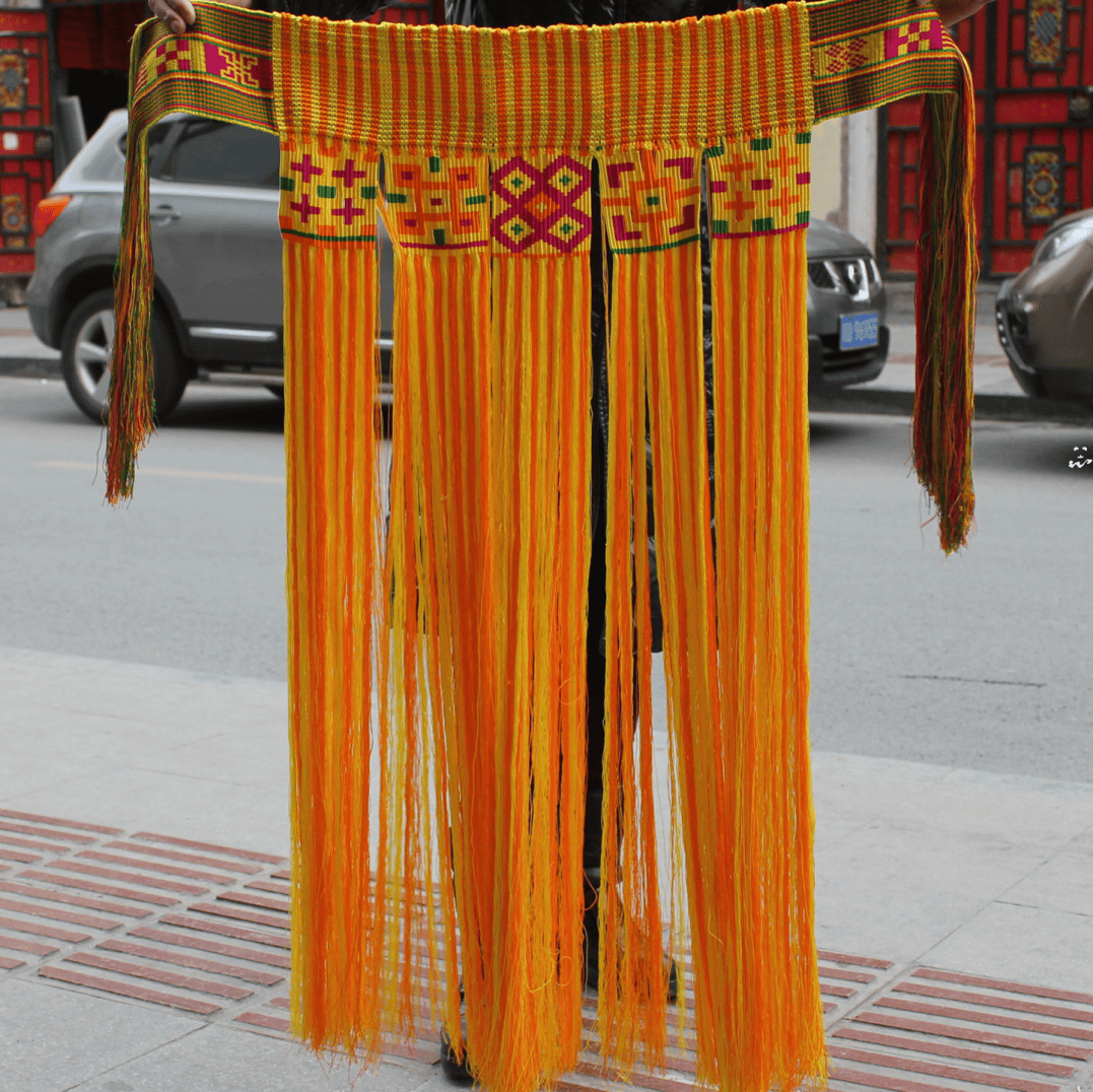 花腰带是黑水妇女喜爱的装饰品,一般宽五寸,长五尺,两头丝线散开,以各色毛线、棉线、丝线作料。