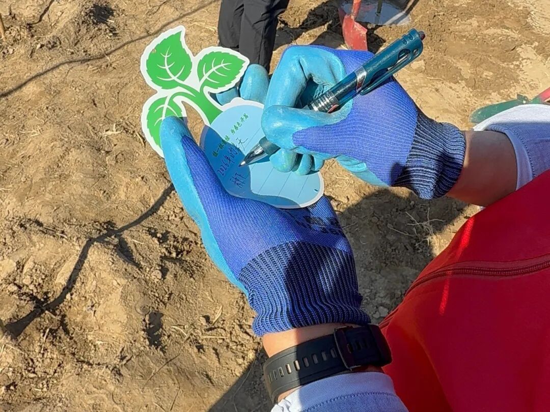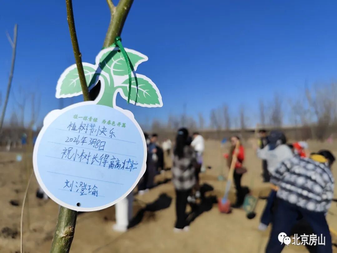 种下小树苗,更种下心中所愿。大家亲手在祈福卡上写下“茁壮成长”“生态向好”等真挚寄语,春风拂过,祈福卡随风摇曳,与小树苗一同扎根生长,成为房山春日里最动人的印记。