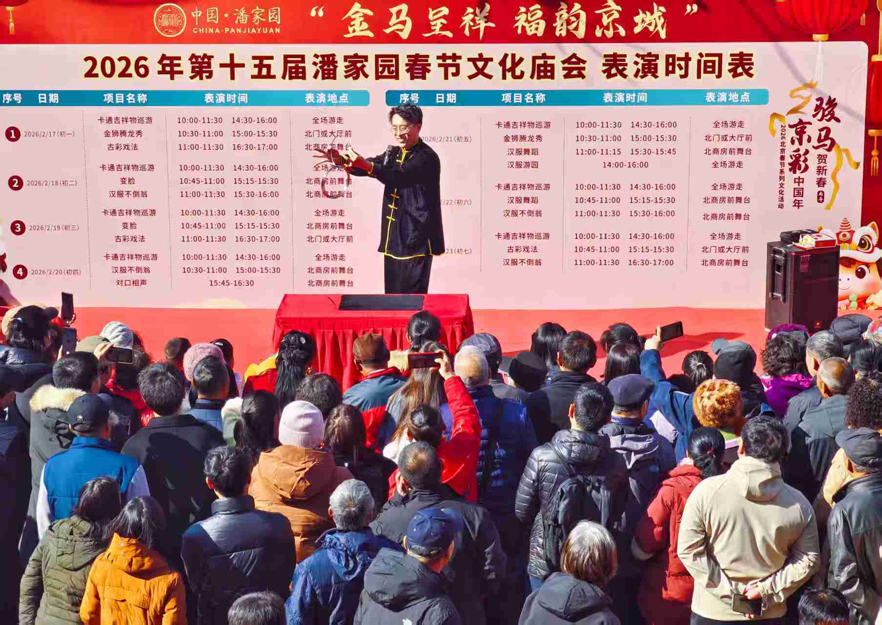 第十五届潘家园春节文化庙会在潘家园旧货市场举办。这个春节在潘家园不仅能开心淘宝,还能欣赏节目,品尝各地的特色小吃。