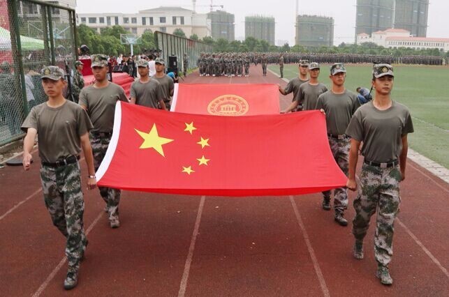在雄壮的《中国人民解放军进行曲》中,学院2017级新生开学典礼暨军训汇报表演圆满落幕。