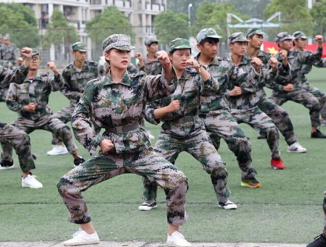 新生开学典礼暨军训汇报表演在庄严的国歌声中拉开帷幕。各方队迈着整齐的步伐,喊着嘹亮的口号昂首阔步通过主席台,接受与会领导的检阅。分列式之后,同学们还进行了军体拳、韵律操、搏击战、拉歌等表演。同学们的精彩表演赢得了主席台领导和现场观众的热烈掌声。