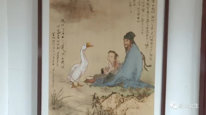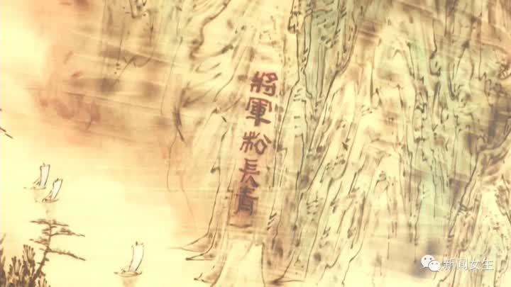 他在我们扬州方巷这边栽了一棵松,后来方巷人民为了纪念他,把这棵松叫了个名字,叫将军松,一看到这棵松,就想到张爱萍了,画上的字叫“将军松长青”,你看,我们在党的光辉照耀之下,我们的江山多么的繁荣昌盛,一种欣欣向荣的景象。
