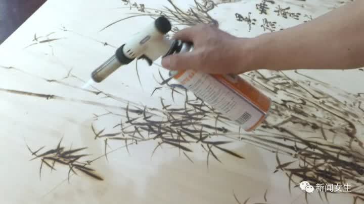 过去烙画也是老百姓在无意中发现的,火把木板烧枯了,发现蛮好看的,然后慢慢地把它改变一下,就画一个小竹子啦,画一个小鸟啦,这个弄得蛮好的,弄到家具上蛮好的,古代的时候就是这样。