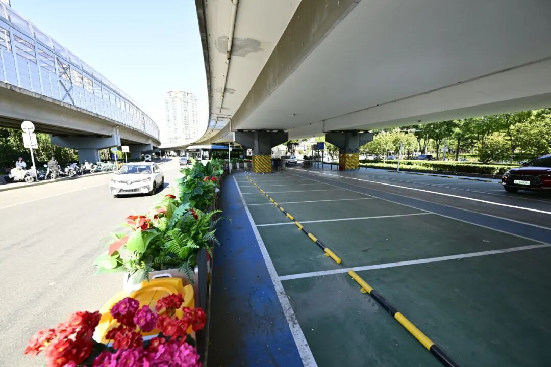 “我们不是简单地把桥下封起来或者划成停车场,而是根据每个点位的特点,精准设计、精细施工。”区交通委相关负责人介绍,在北苑高架桥项目中,共规划出5块桥下空间,同步推进功能整合与环境美化。共新增170余个公共停车位,全部接入智慧停车系统,实现无感支付与智能引导。同时,安装404个景观灯箱,用花箱打造出约129平方米的隔离带,形成一条连贯的绿色视觉廊道。