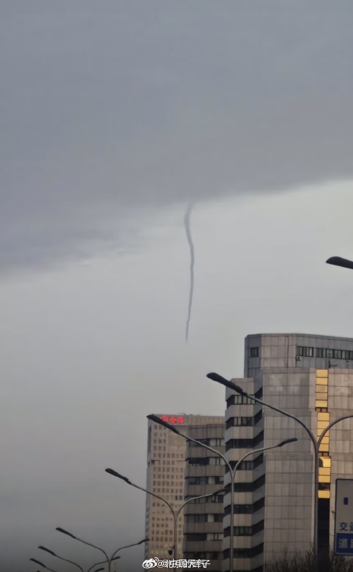 不少网友今天早上拍到北京西边方向天空有疑似“龙卷风”,这到底是啥?中国天气首席气象分析师信欣表示,这可能是云里有些垂直切变形成的漏斗云,不过没接地,应该不算龙卷。