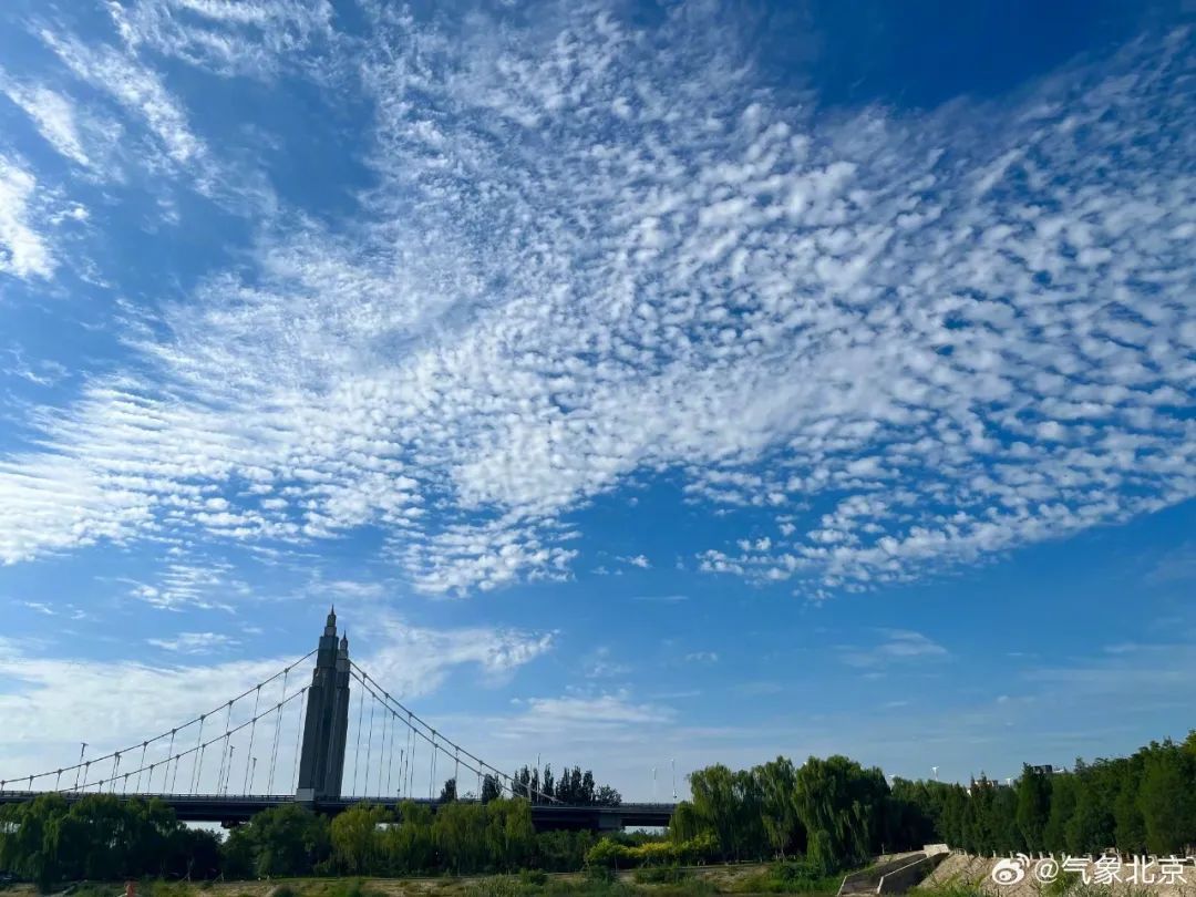 据@气象北京 消息,今天北京天空中出现大面积密布透光高积云,也称“鱼鳞云”。