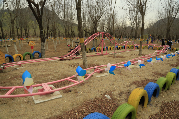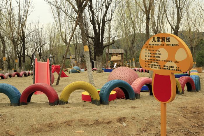 亲子乐园中包含儿童游玩沙池、网红秋千、儿童拓展、油桶小火车等娱乐项目。同时,为提倡环保新风,亲子乐园内利用废旧轮胎制作创意装饰品,让废旧轮胎得到再利用。