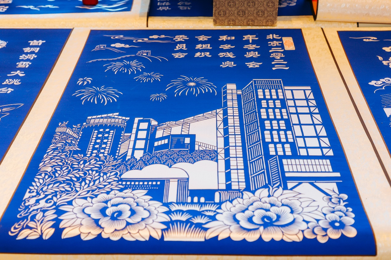 由天津唐氏邮票画制作技艺与蔚县剪纸联合捐赠的冬奥系列剪纸作品,选取国家雪车雪橇中心、国家跳台滑雪中心、首钢园国家冬季运动训练中心等六个2022年北京冬奥会场馆(场地)为创作主题,由天津非遗传承人提出创意理念,蔚县非遗传承人执行设计并制作而成。这不仅是民间艺术与冬奥文化的交融,更是京津冀协同发展的生动缩影。三地携手将冬奥场馆的风采定格于方寸纸上,既展现了京津冀深厚的文化底蕴,也彰显了三地在文化传承与重大赛事服务中同心同向、协作共进的强大合力。