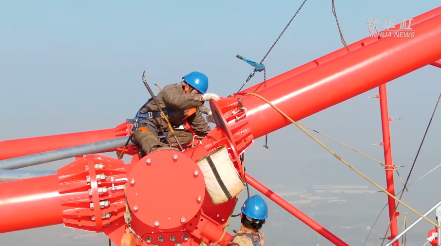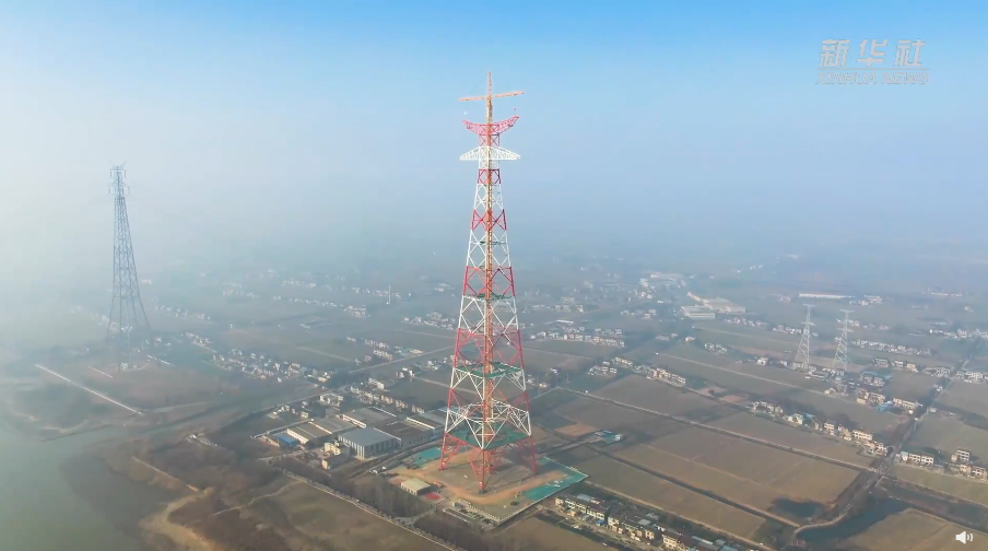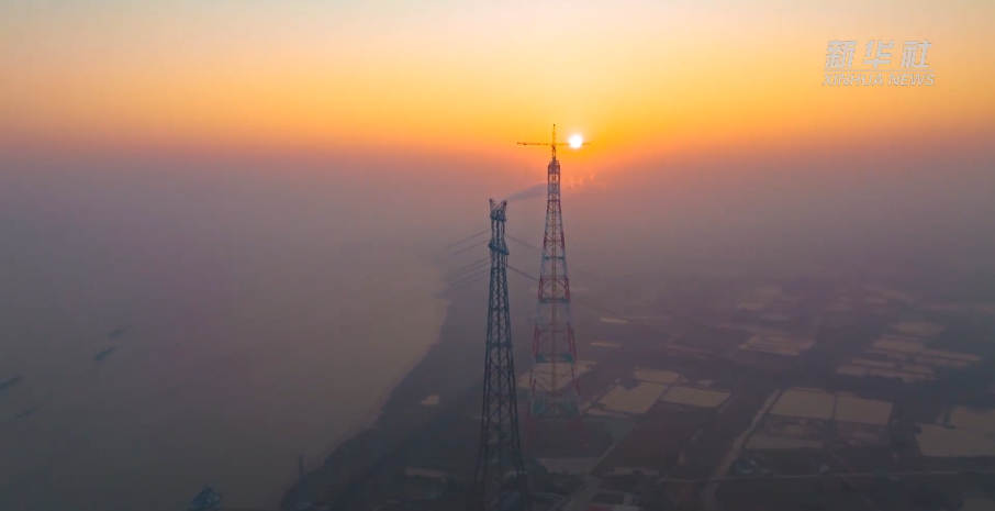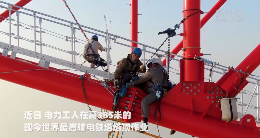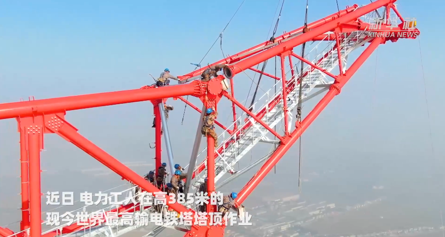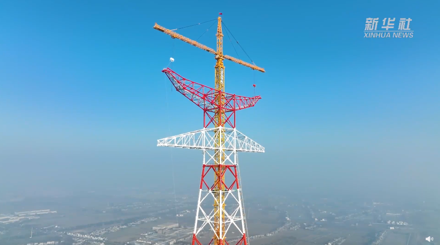 1月12日,高385米的世界最高输电铁塔在江苏顺利封顶。该铁塔是泰州凤城至无锡梅里500千伏输电线路工程的重要组成部分,工程建成后,每年可将约289亿千瓦时的清洁电能从长江北岸送往长江南岸,满足约800万户家庭的日常用电需求。