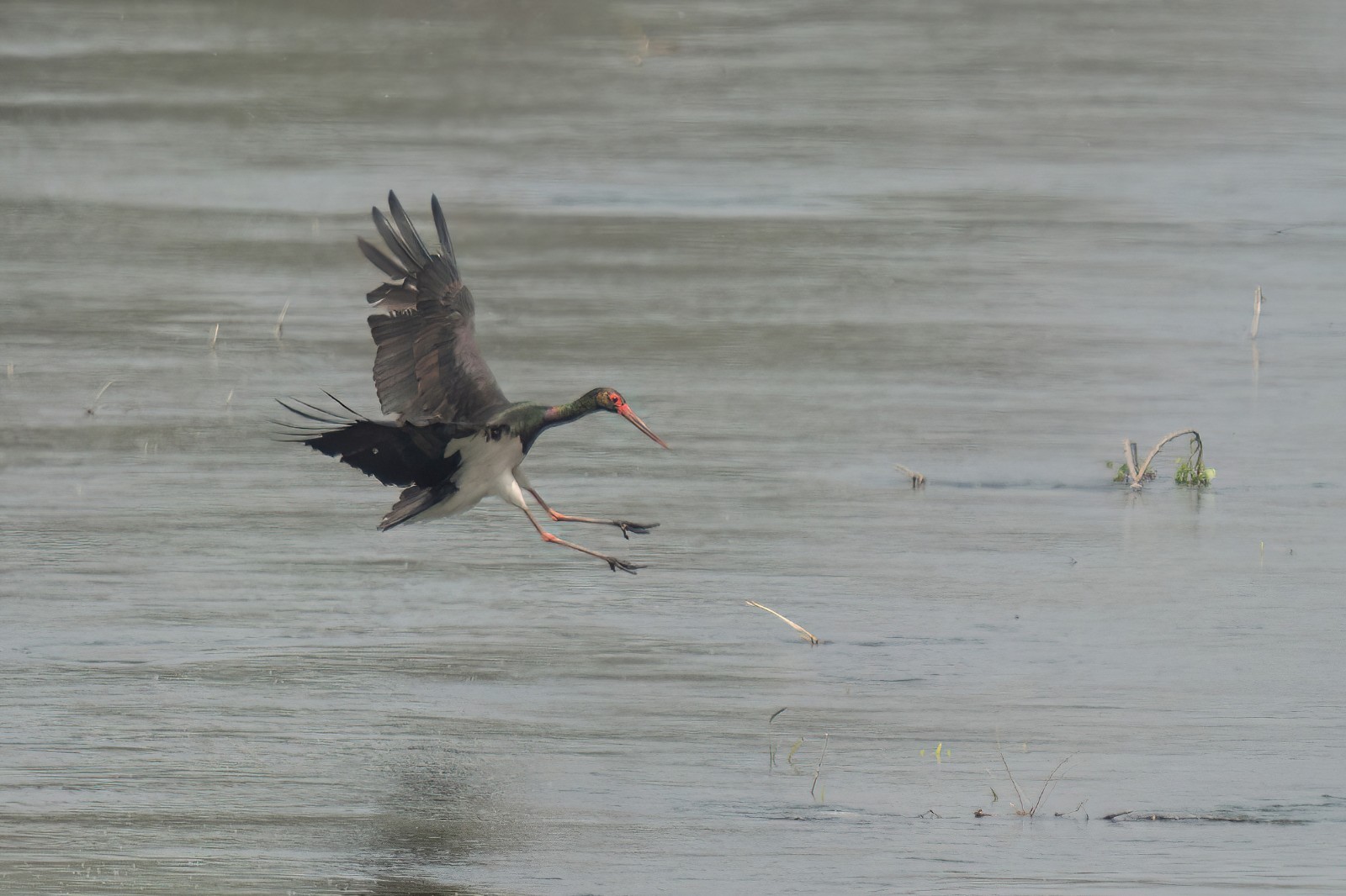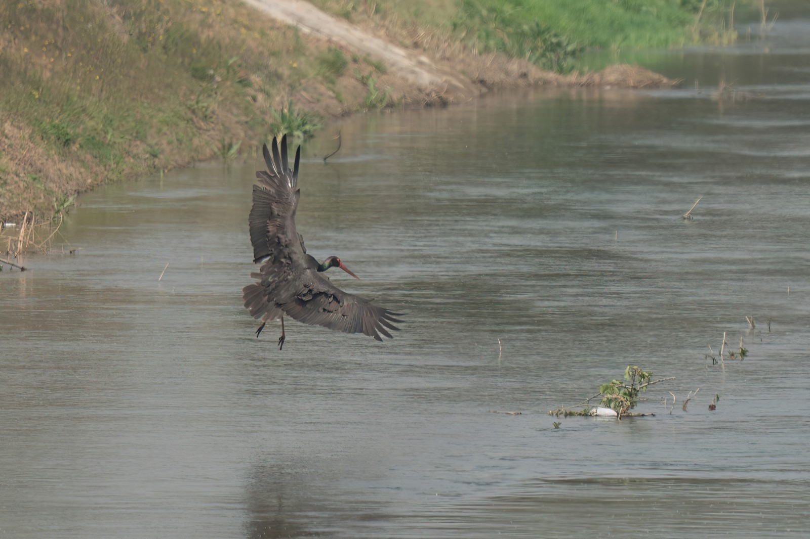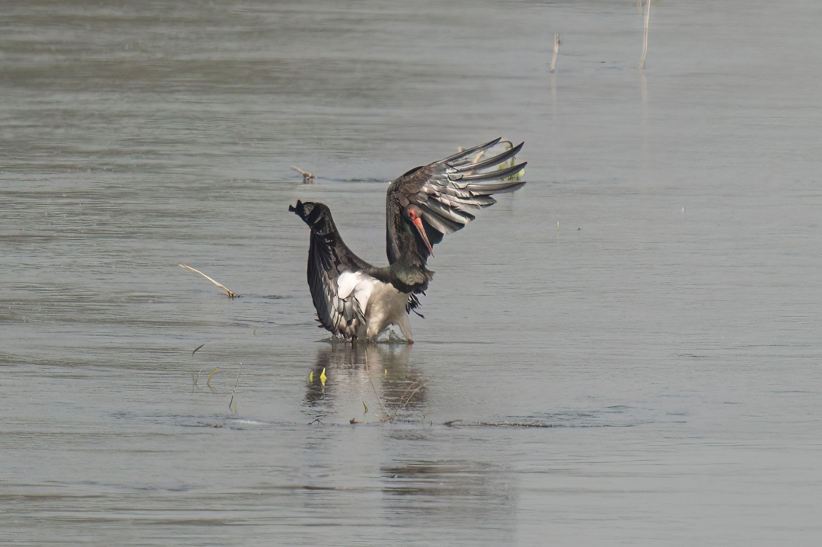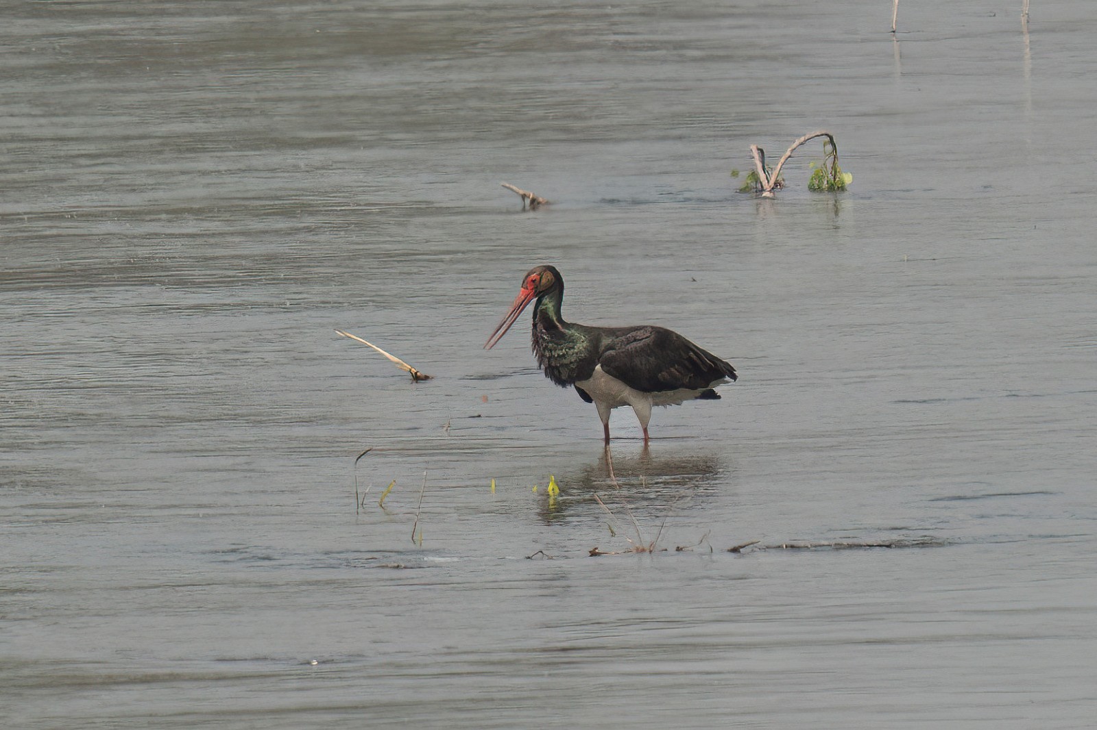 4月16日,在海淀区北部水系柳林河道,水务部门首次发现黑鹳停留觅食。