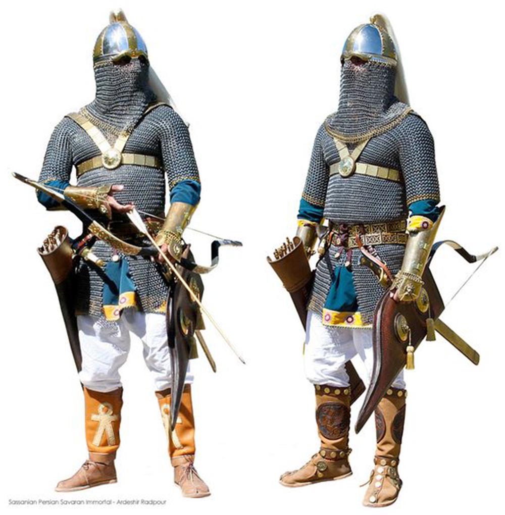 萨珊王朝的重型骑兵分为两种︰重装骑兵及甲胄骑兵。萨珊王朝的贵族成员自少便接受军事训练,成为这两种骑兵的一分子,这些重型骑兵通常与轻型骑兵、步兵及弓兵混编在一起。萨珊王朝的军事战术主要以弓兵、战象及其他部队扰乱敌人,由骑兵伺机而动发动冲击。罗马史学家阿米阿努斯·马尔切利努斯对沙普尔二世麾下重装骑兵的形容足以显示他们的重装厚甲及武器配备:所有部队都被铁器所覆盖,厚厚的护甲遮掩著身体的每一个部分,装甲的接合点很好地连接着四肢,盔甲的面部做工精良,吻合骑士的头部。由于身体完全被金属覆盖,骑士只能透过对合瞳孔的小开孔视物,呼吸只能透过鼻尖处进行。一些骑士配备长矛,他们在站立时不动如山,你或许会以为他们被一堆金属固定着。