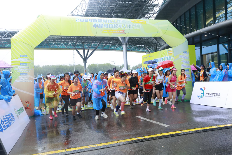 以“照亮征程 加速奔跑”为主题的2024首都科技工作者半程马拉松4人接力赛在怀柔科学城举办。8点30分,随着鸣笛发令,参赛队伍首棒选手开跑,这场“科技与速度”的较量也正式拉开帷幕。