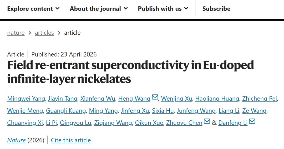 值得一提的是,这也是薛其坤-陈卓昱团队继4月8日在《自然》发表关于镍基氧化物薄膜超晶格的超导电性与电子结构的文章之后,半个月内发表的第2篇国际顶刊论文。