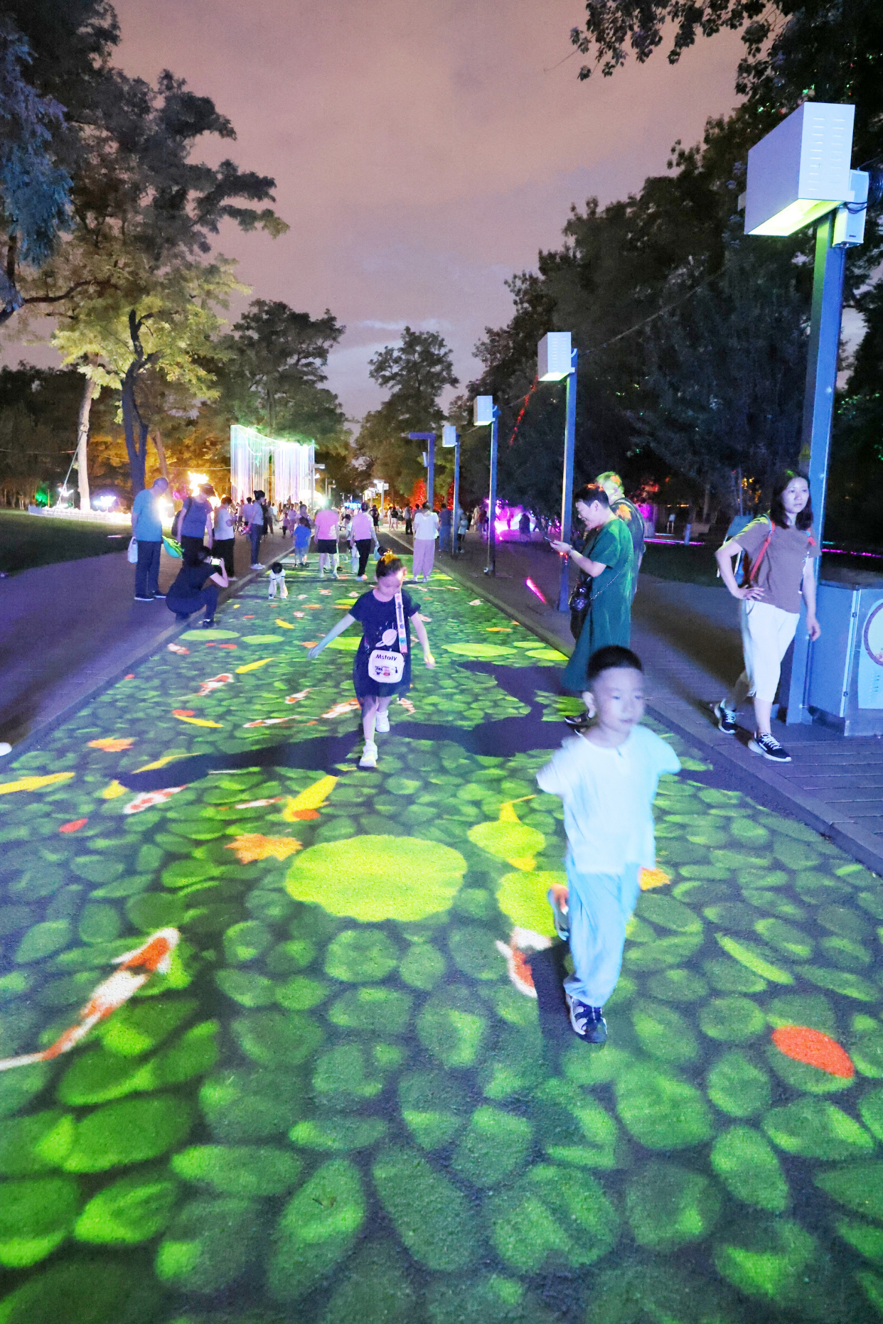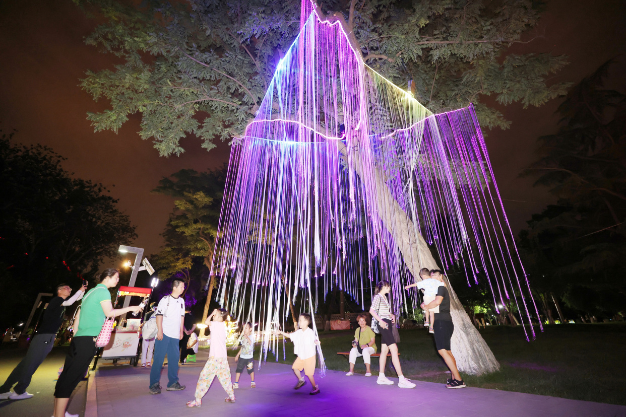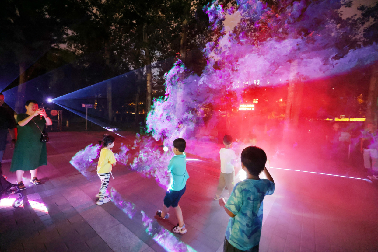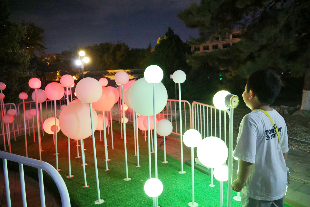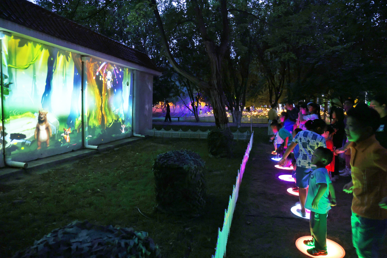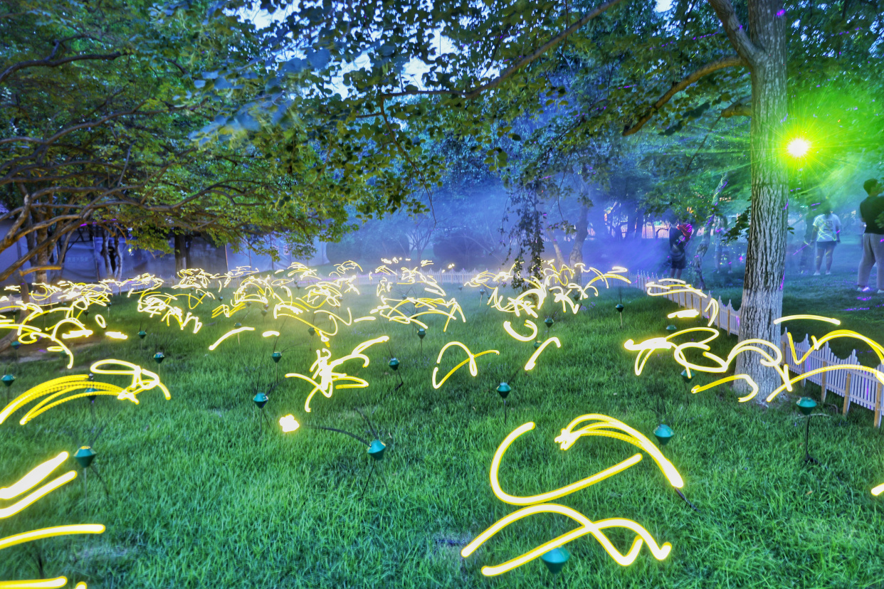 如梦似幻的“萤火虫”森林、新奇有趣的水幕秋千、科技感满满的互动游戏……龙潭公园的夏夜被一场异彩纷呈的光影秀点亮,为大家带来酷炫的视觉盛宴。