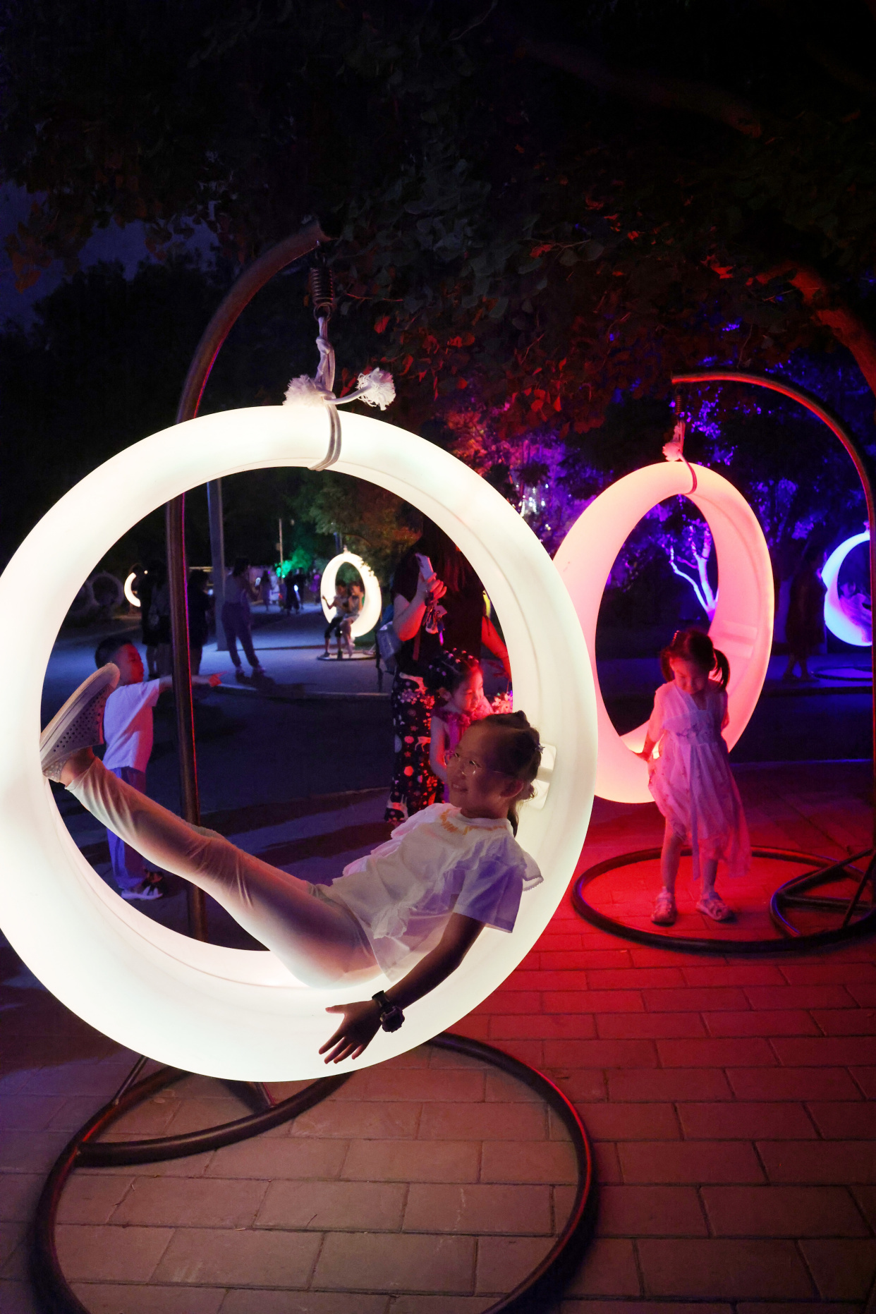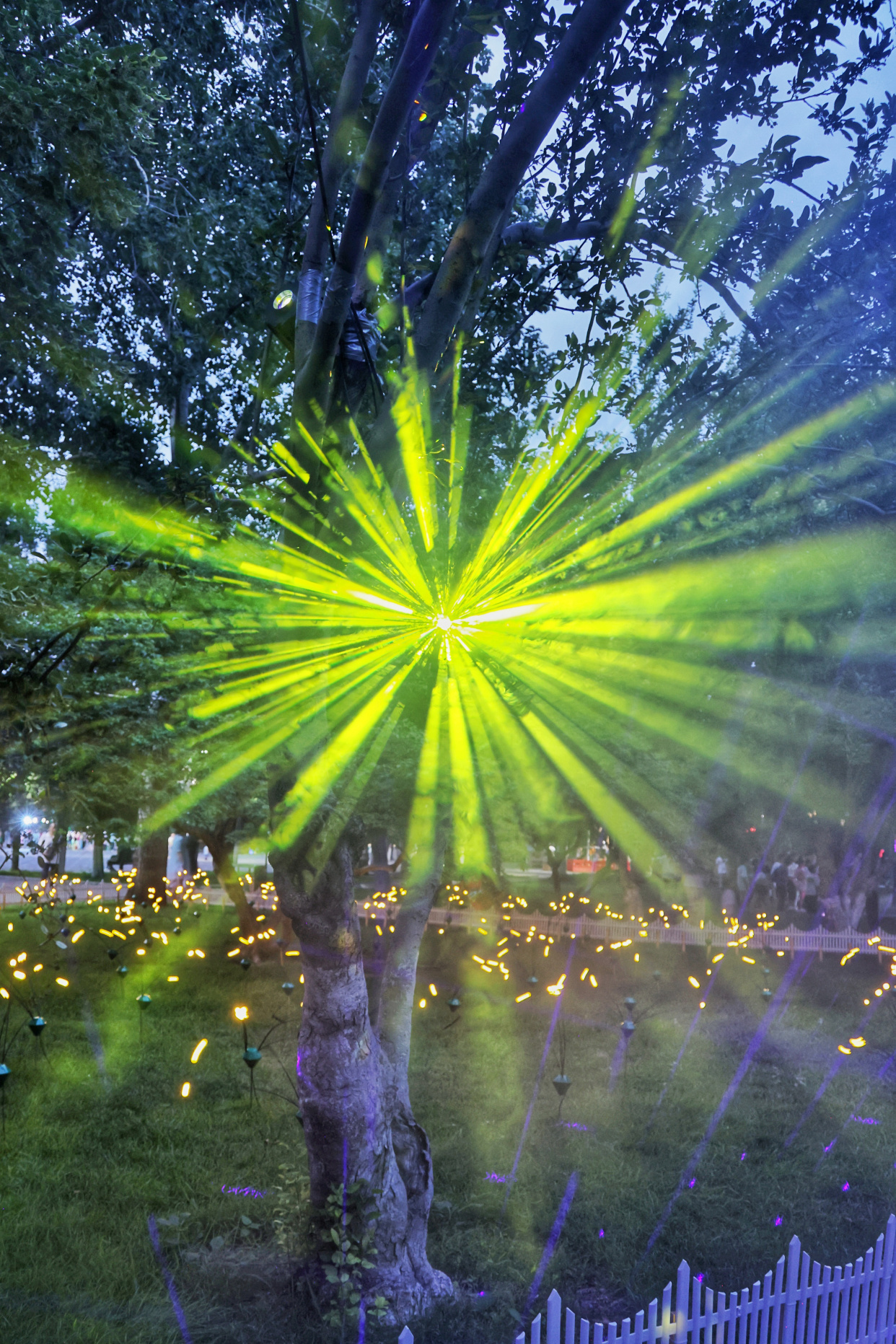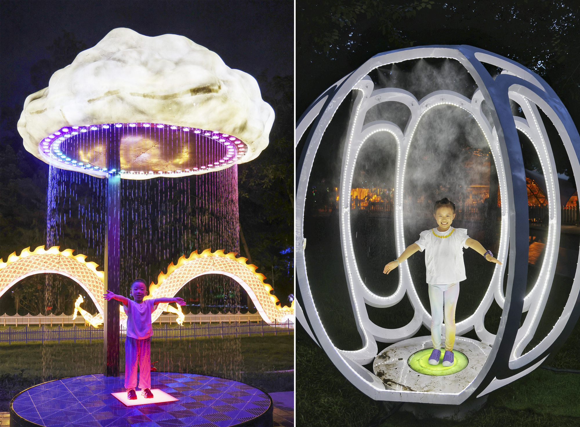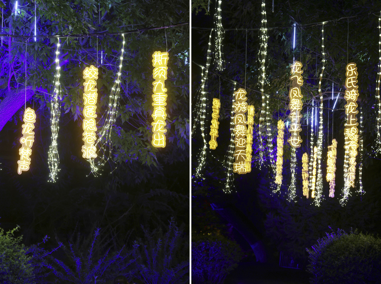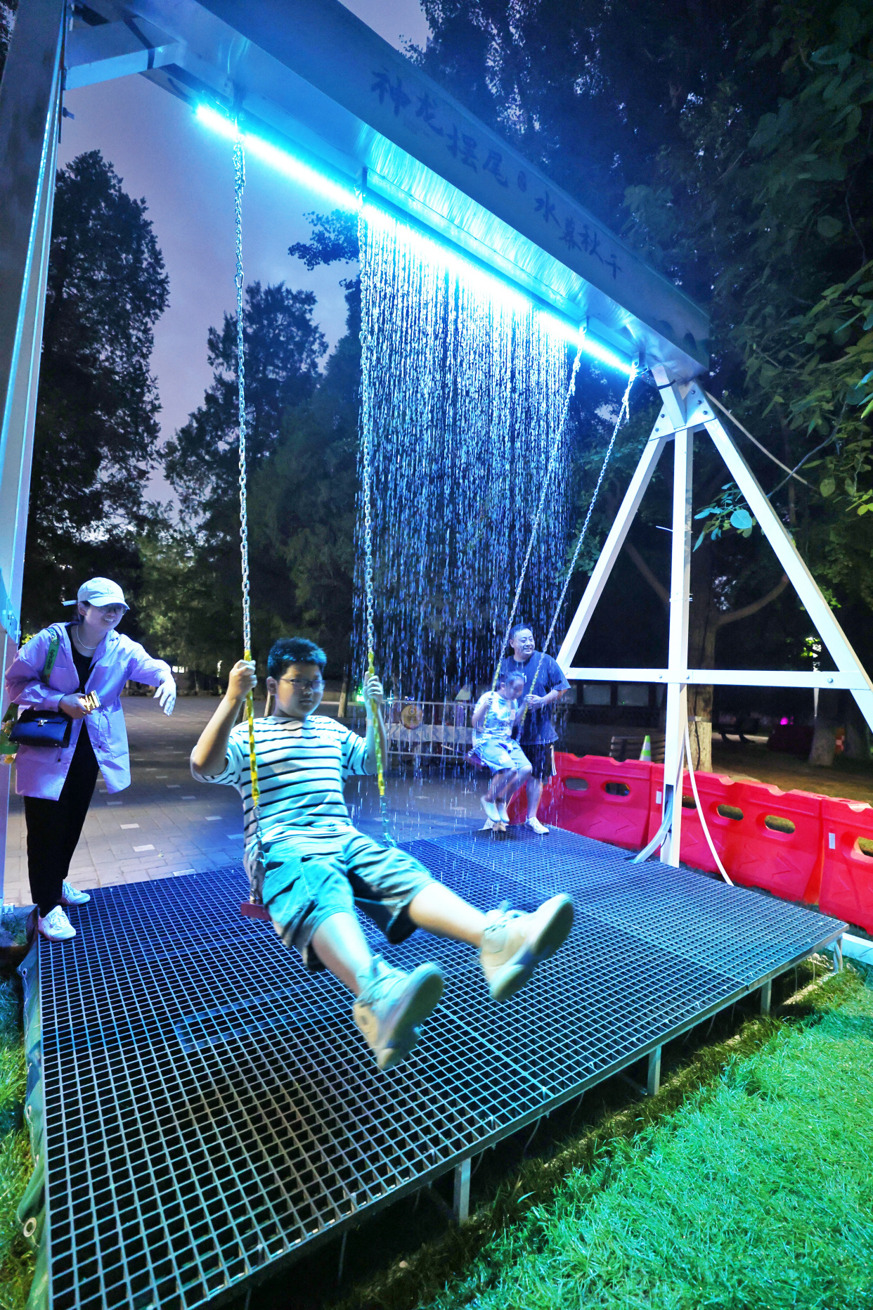 如梦似幻的“萤火虫”森林、新奇有趣的水幕秋千、科技感满满的互动游戏……龙潭公园的夏夜被一场异彩纷呈的光影秀点亮,为大家带来酷炫的视觉盛宴。