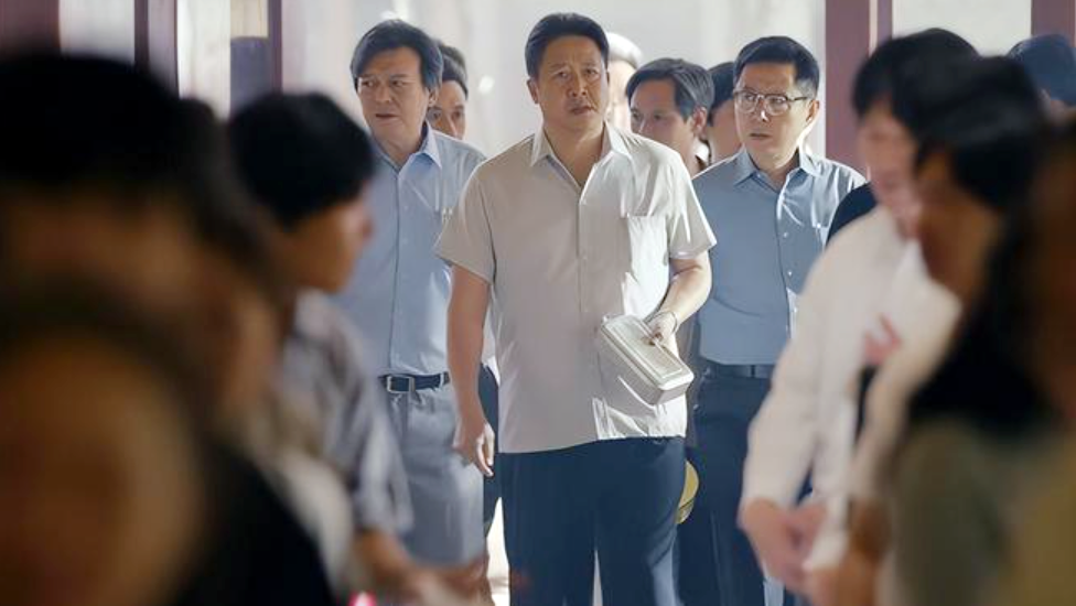 张国强以“收放自如”的表演,令赵东升的人物形象完整、立体、鲜活。比如力排众议任命李秋萍时,他语速平缓却眼神笃定,一句“她能补郑德诚的短板”,尽显决策智慧,同时又用温和语气化解反对声音,从始至终没有强势说教,尽显沉稳底气;面对月海镇“化整为零”批地被查,他主动担责,坐姿端正却眉头微蹙,语气恳切不辩解,将“护犊子”的担当与原则性融于细节。