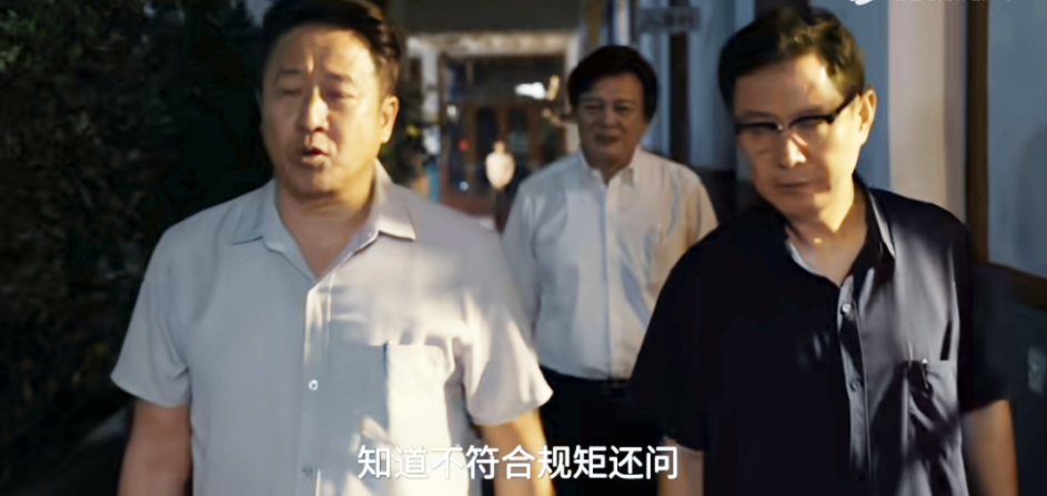 这时,张国强饰演的赵东升在两位干部陪同下,并未停步、更未回头,只用两句小声“回答”,就演活了这个人物。