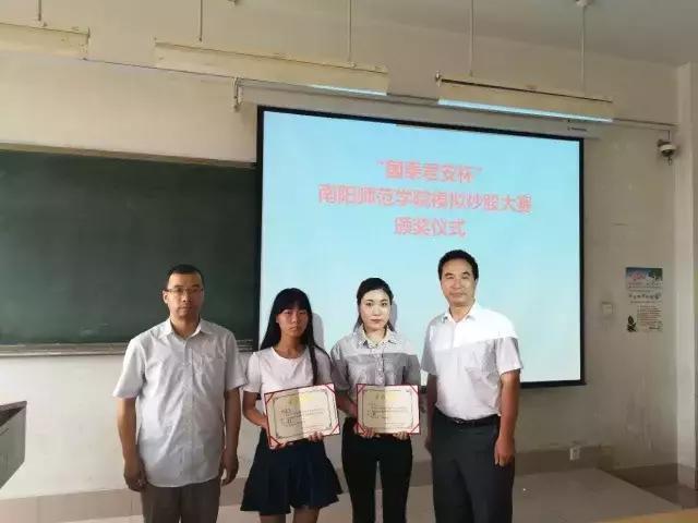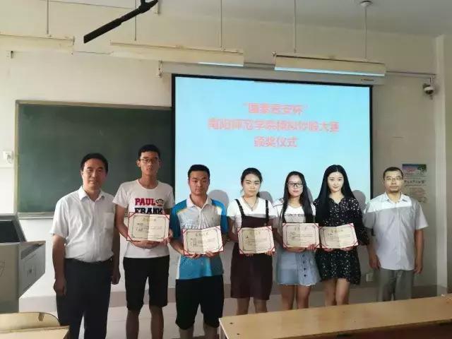 第一届国泰君安杯“寻找未来投资家”全国高校股神竞技赛南阳师范学院海选赛颁奖仪式在我院逸夫楼N501举行,我院学生获一等奖1名,二等奖2名,三等奖3名,优胜奖5名。此次比赛前后经历一个多月,由前期的宣传、组织选拔选手、正式开始比赛、每期选出优异选手进行表彰,最终取得圆满成功。国泰君安提供了优厚的奖金,更为优秀学生提供了实习岗位。