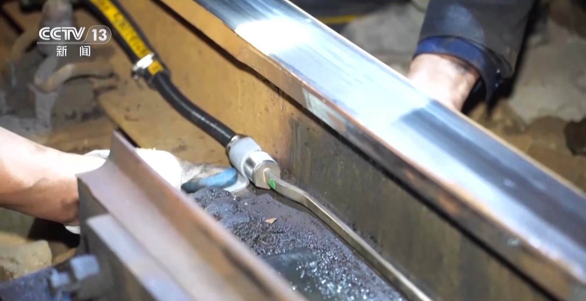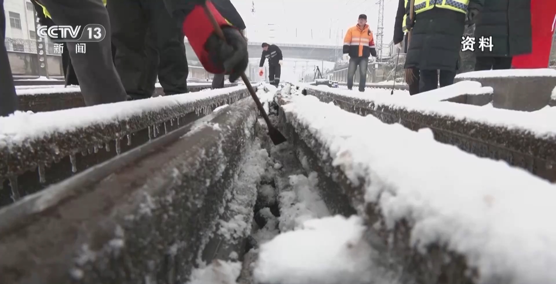 中国铁路武汉局汉口站副站长 田毅:没安装这种装置之前,遇到这种恶劣天气,我们完全是人工,靠我们的干部职工在现场除雪打冰。毕竟是人工作业,效率不能够满足我们正常的行车需要。现在我们在接到雨雪预警的时候,提前半个小时打开融雪装置,这样就能保证现场降温的时候,列车设备正常运转。