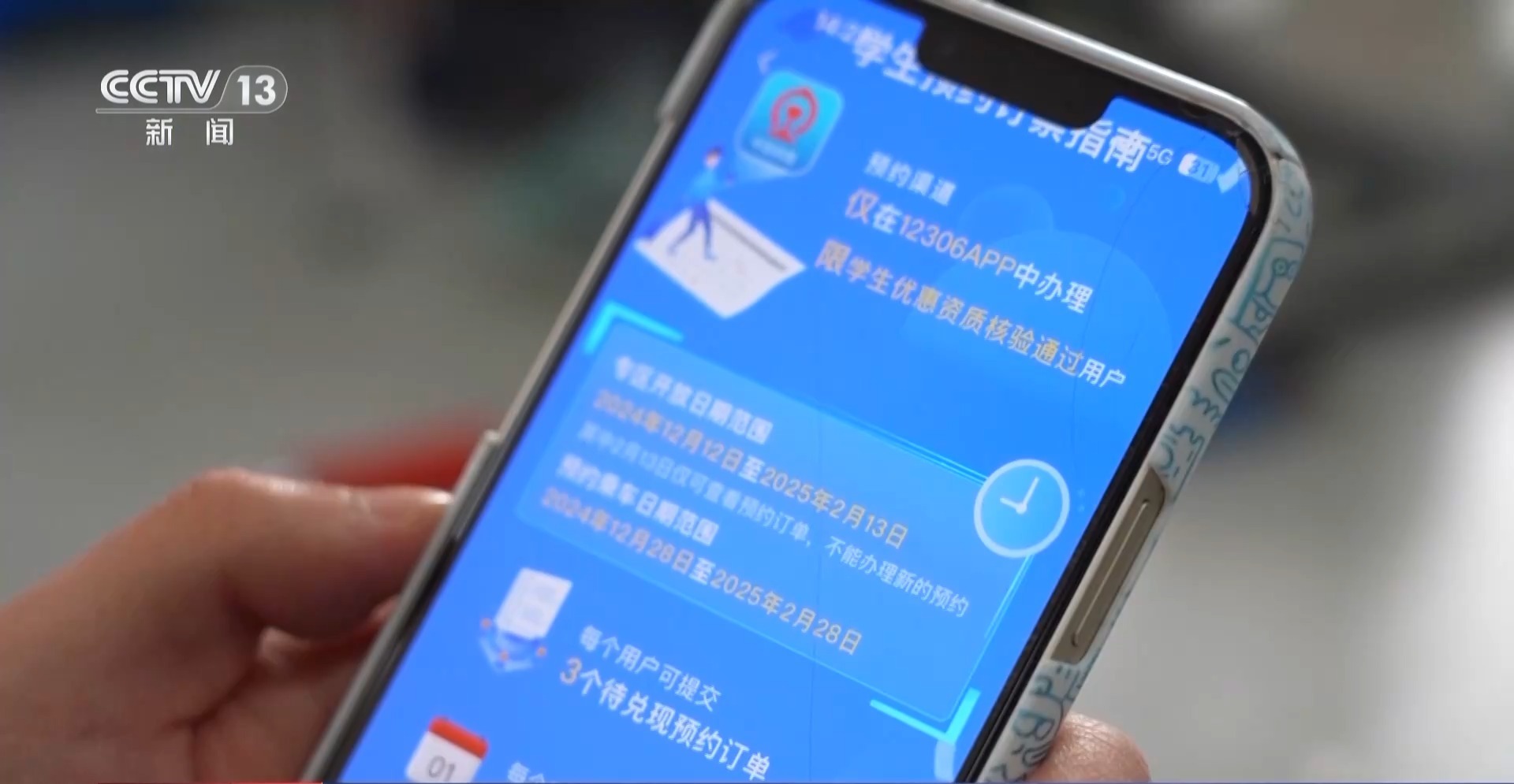 贾小鹏:打开12306客户端之后就可以看到学生购票专项服务专区,点进去后要先进行学生优惠资质核验。完成核验之后,根据提示填写目的地、到达地、出发地、出发时间、车次和席别之后,就可以确认订单,然后等待预约通知。