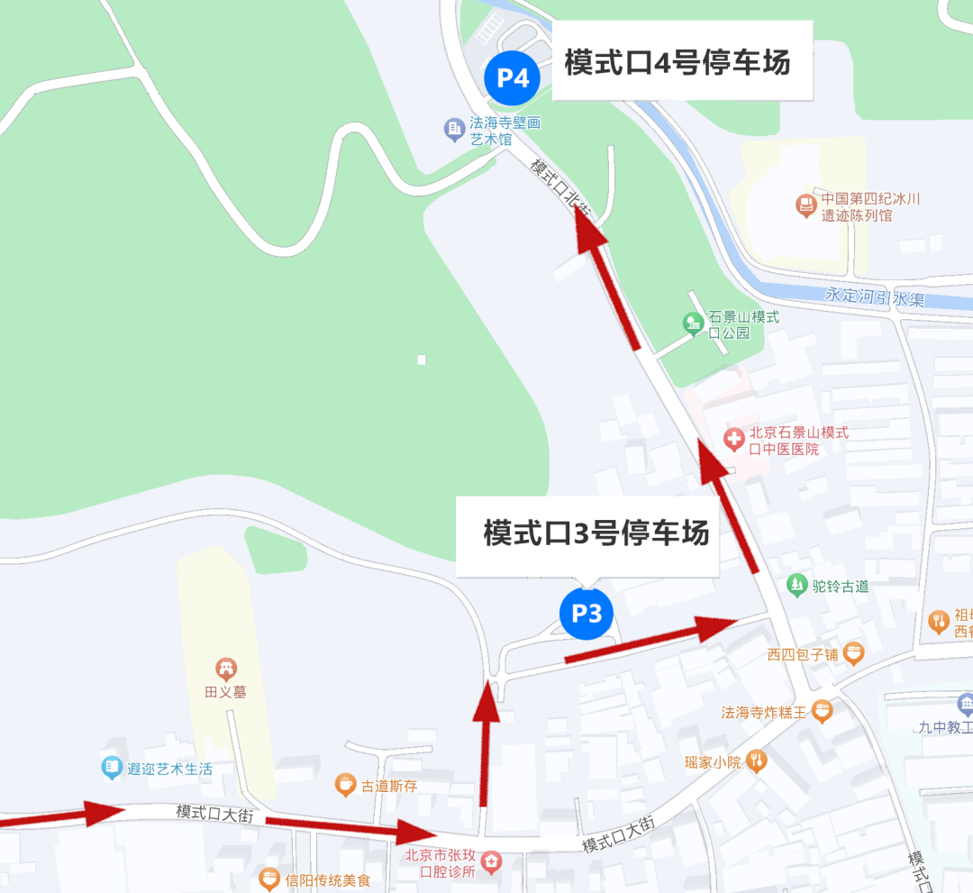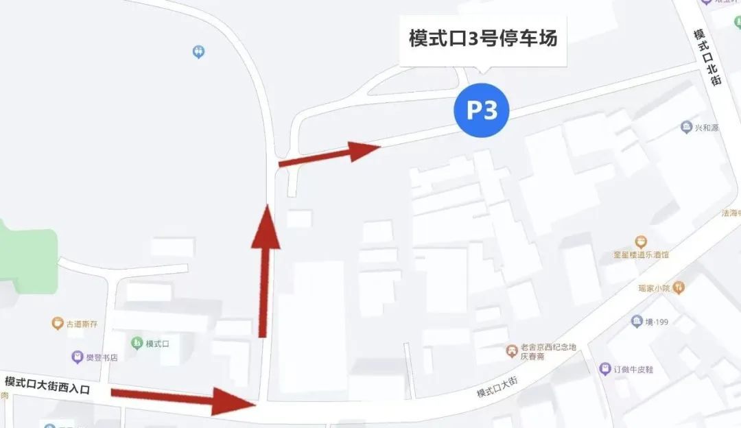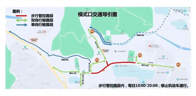 从模式口南里小区进模式口大街后只能从导行路出模式口村,不能直接穿行模式口南小街。