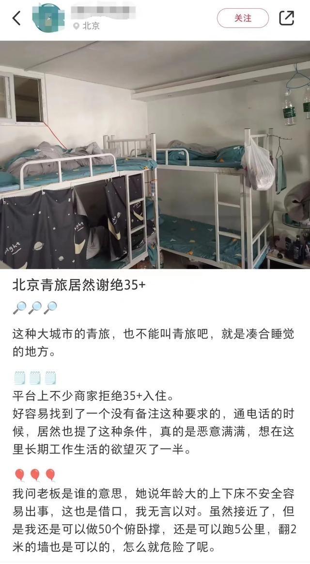 有网友在某社交平台上发帖称 北京有青旅拒绝接待35岁以上的人群