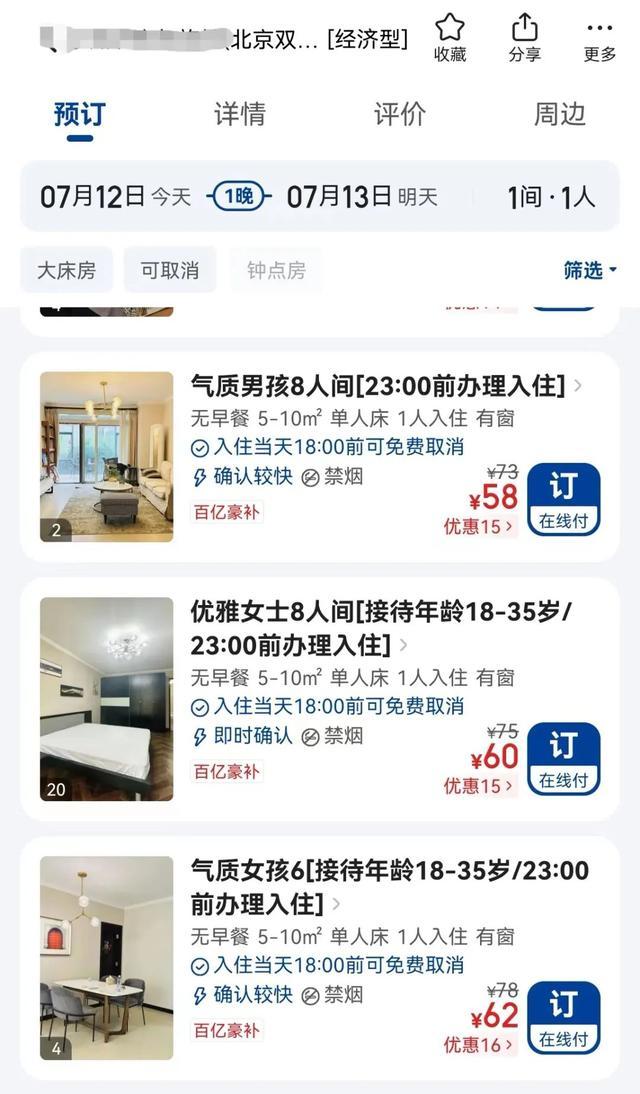 北京一家青旅在房型上明确注明“18-35岁”
