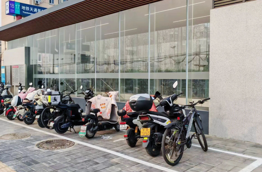 龙德广场作为天通苑地区的大型商业综合体,营业期间大量非机动车涌入,现有场地远远不能满足停放需求,“停车难、停车乱”问题突出。天南街道采取“疏堵结合”的方式,一方面,对主次干道、学校、医院、商超、交通枢纽及社区出入口等区域开展实地踏勘,精准统计施划面积,统一施划清晰规范的停车标线。截至目前,辖区内共增设非机动车停放区133处,可满足2000余辆车辆停放需求。
