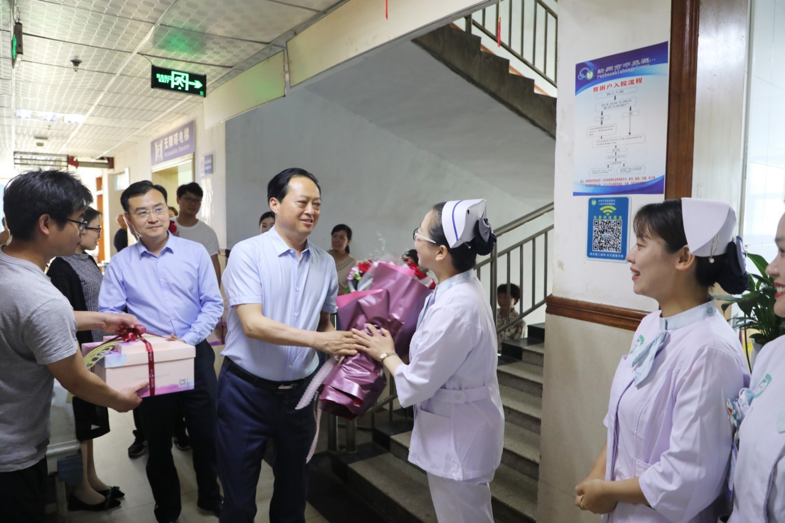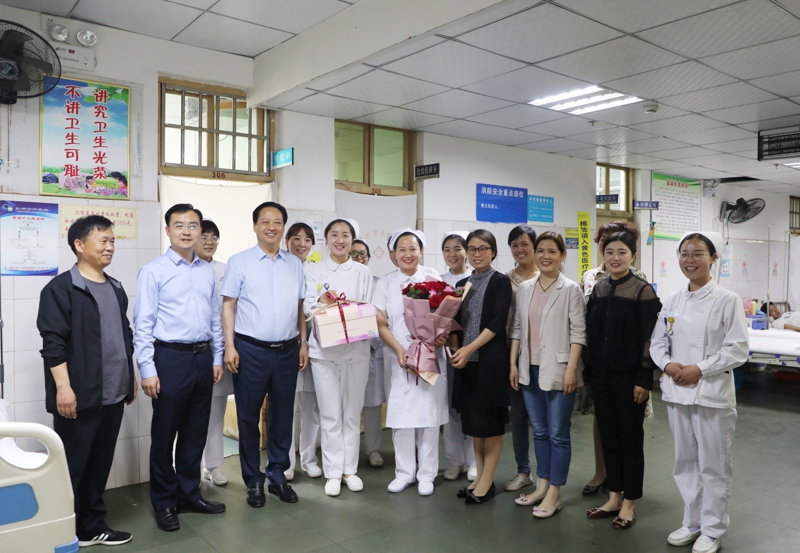 汝州市中医院党委书记王福帅、院长张宇航携班子成员,与护理部全科室人员一起,带着特制的蛋糕和玫瑰花,向那些长期以来辛勤劳动和默默付出的护士姐妹们送去诚挚的祝福和节日的慰问。