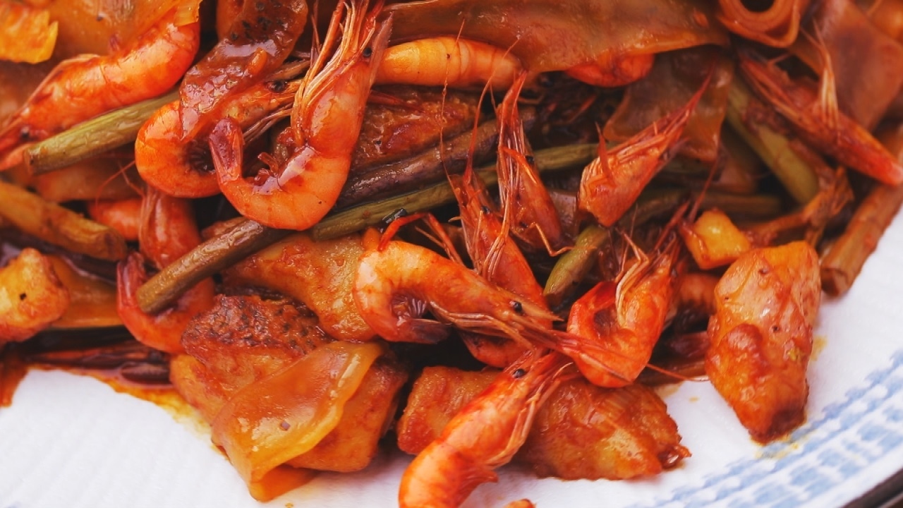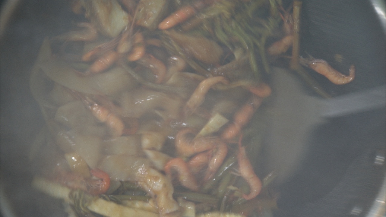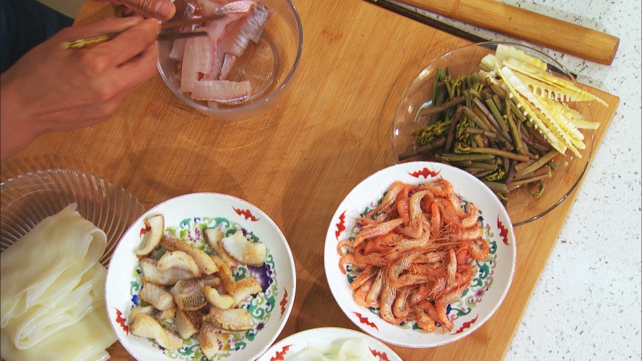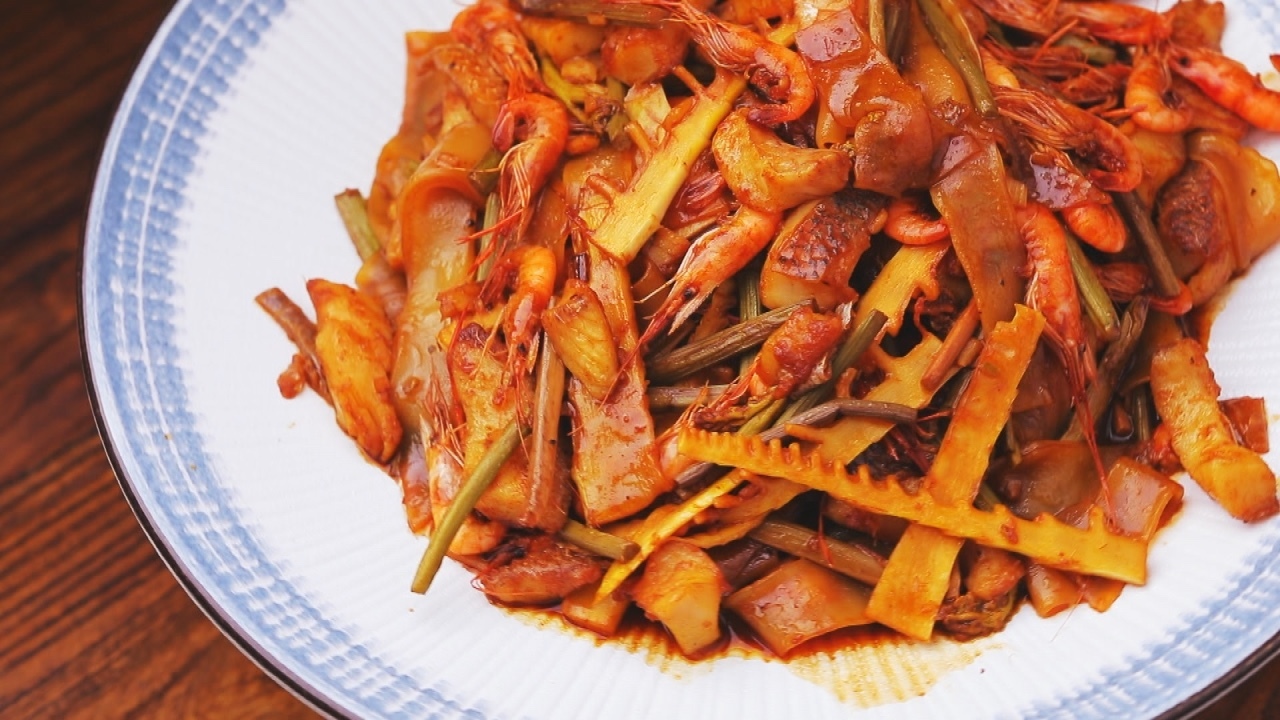 食材:河虾、笋、蕨菜、鲈鱼、凉皮