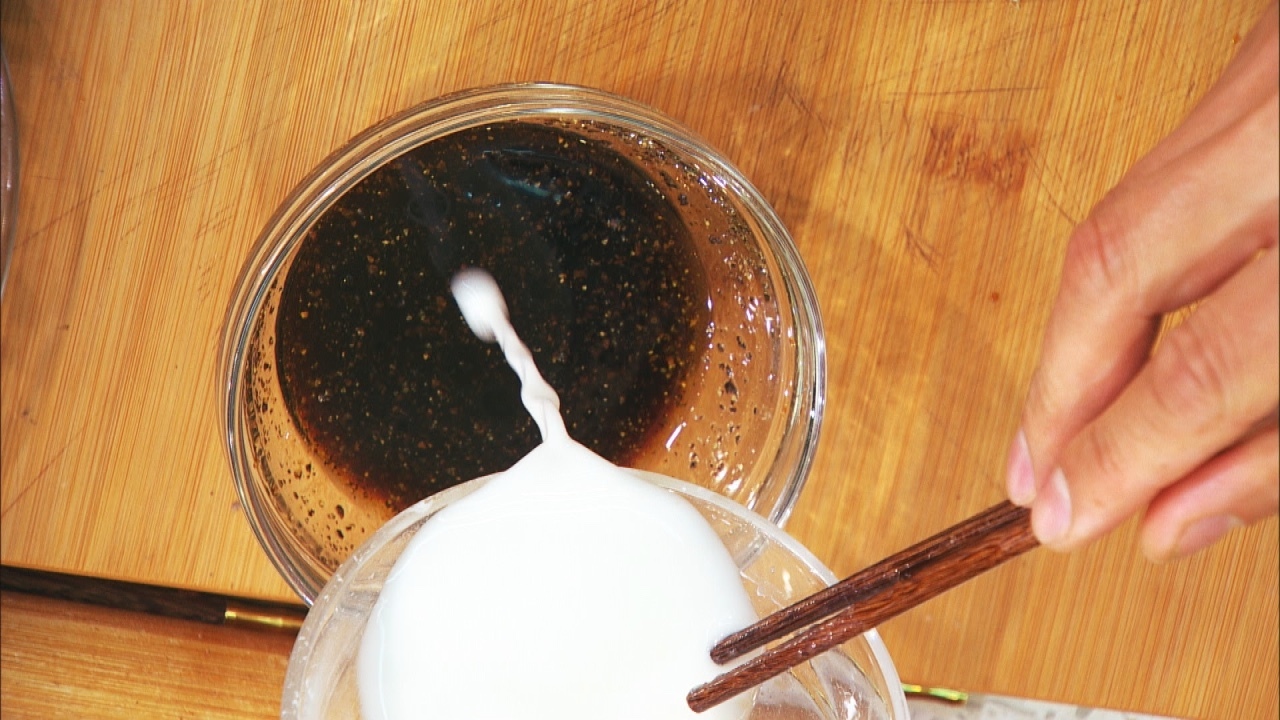 步骤2:碗中加酱油、醋、麻油、盐、黑胡椒做成碗汁;