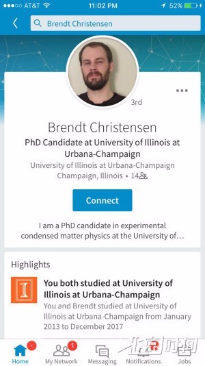 克里斯滕森在领英(Linkedin)上的个人信息显示,他是一名在读物理博士研究生,2013年来到UIUC,如果不是涉嫌绑架,他将在2018年博士毕业。
