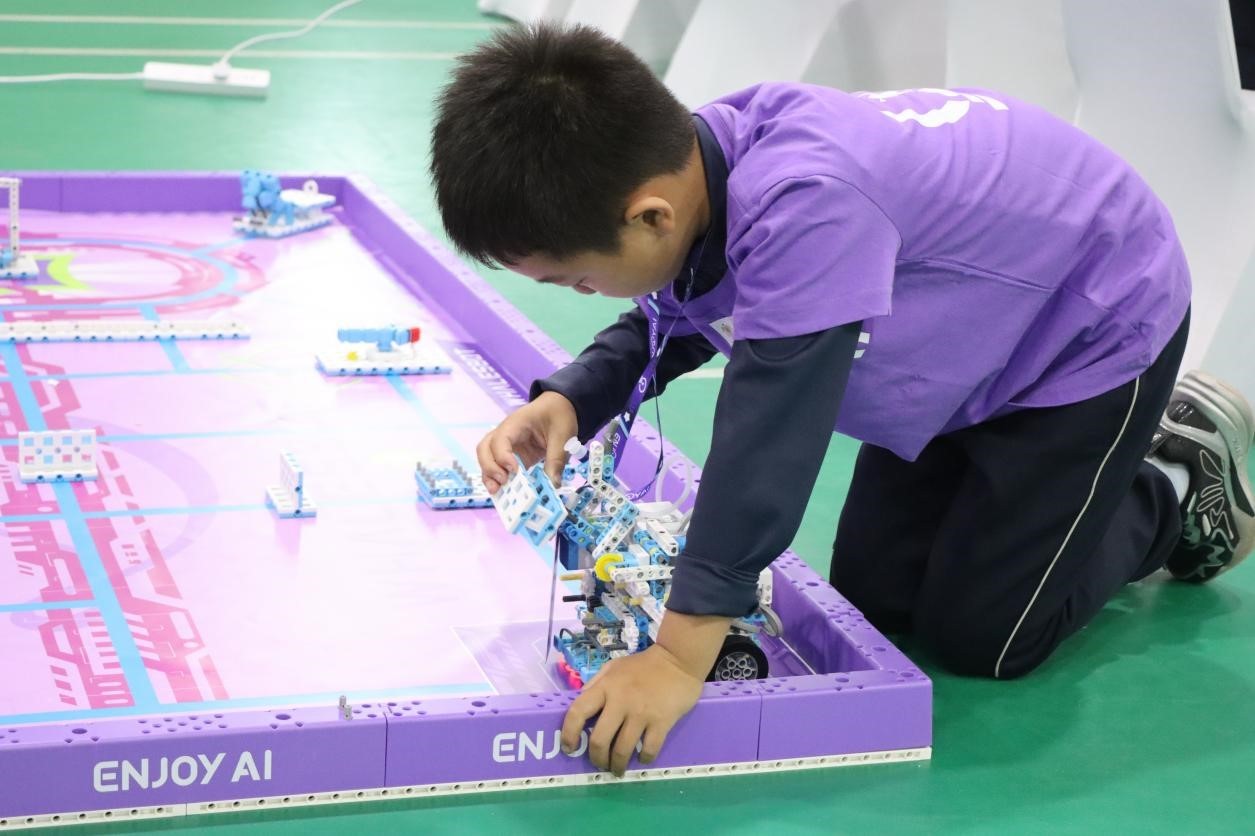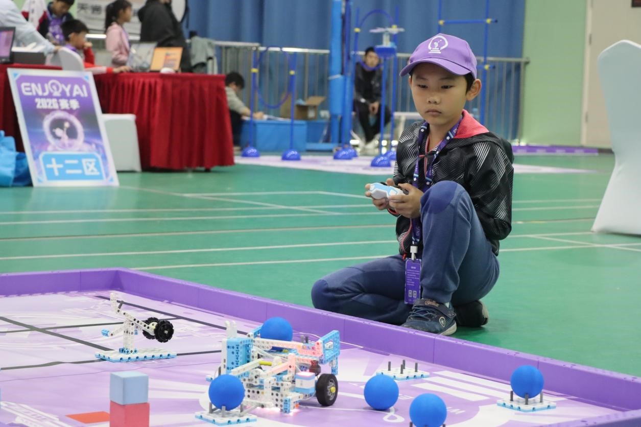 4月25日上午,ENJOY AI City 2026全球青少年人工智能竞赛北京市城市联赛在昌平区天通苑南街道主赛场开幕。