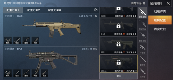 团竞等级提升后,可以用军备点解锁对应的枪械并直接配置!