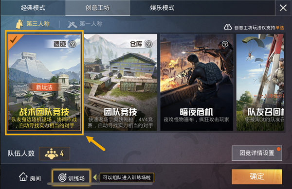 “战术团队竞技”,就是在《和平精英》最新版本“重装对决”实装在“创意工坊”中的崭新玩法,节奏够快,场面够炸!