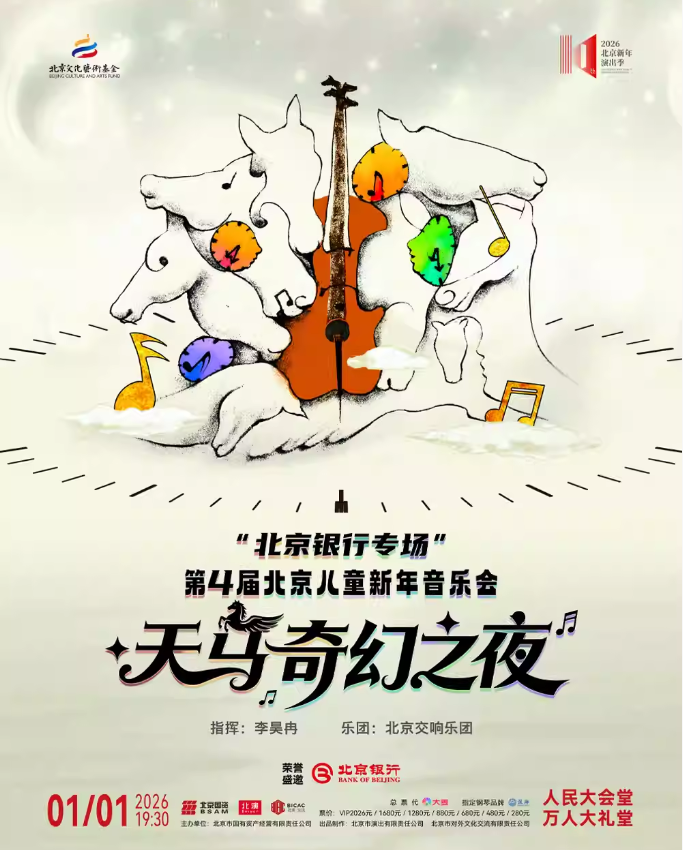 2026年1月1日,“北京银行专场”第4届北京儿童新年音乐会——天马奇幻之夜将在人民大会堂万人大礼堂为孩子们献上新年的第一份礼物。