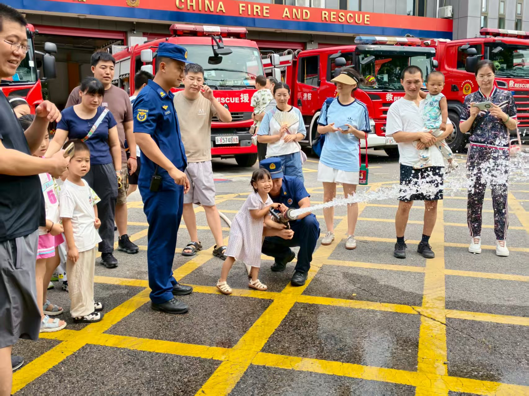 活动伊始,消防员带领家长和孩子们参观了各式消防车辆,详细讲解了水罐消防车、云梯消防车等不同车型的功能特点。“消防车能装多少水?”“这个长长的梯子能升多高?”面对孩子们充满童趣的提问,消防员耐心解答,并邀请孩子们登上驾驶室体验。孩子们通过近距离观察专业设备,不仅加深了对消防车辆的理解,更在潜移默化中强化了消防安全意识。