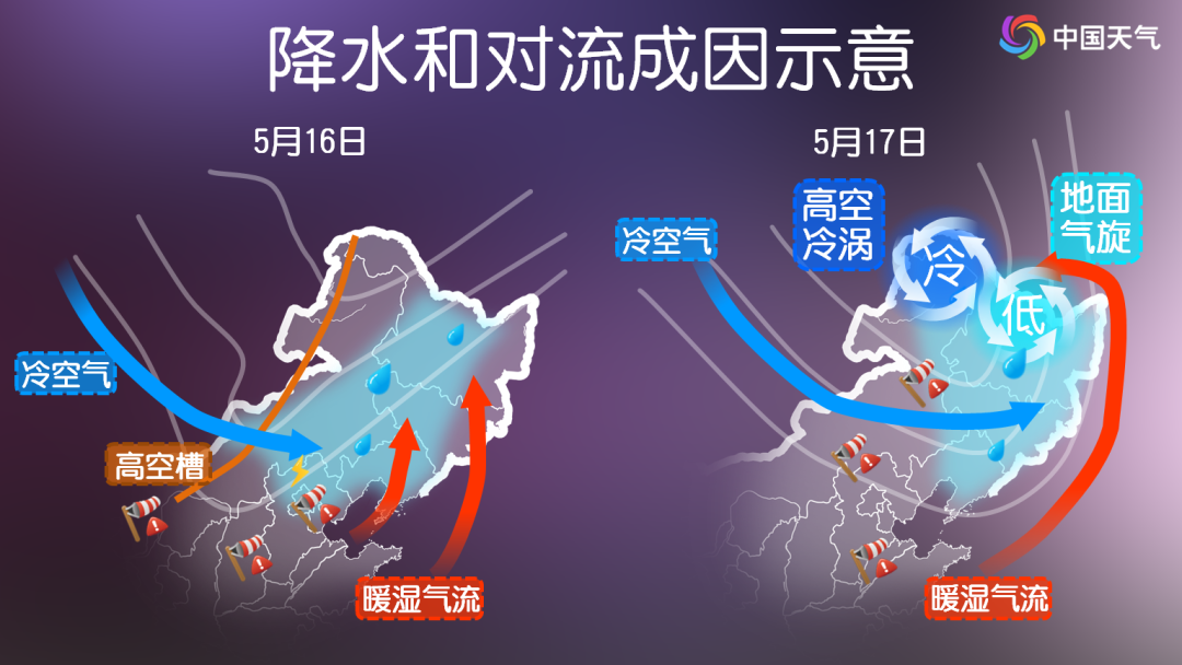 作为影响北方地区天气的重要推手,冷涡虽一年四季都有活动,但5至7月最为活跃。冷涡容易引导冷空气与暖湿气流碰撞,进而产生雷暴、短时强降水、大风、冰雹,甚至龙卷风,还会出现气温骤降、白昼如夜等现象。