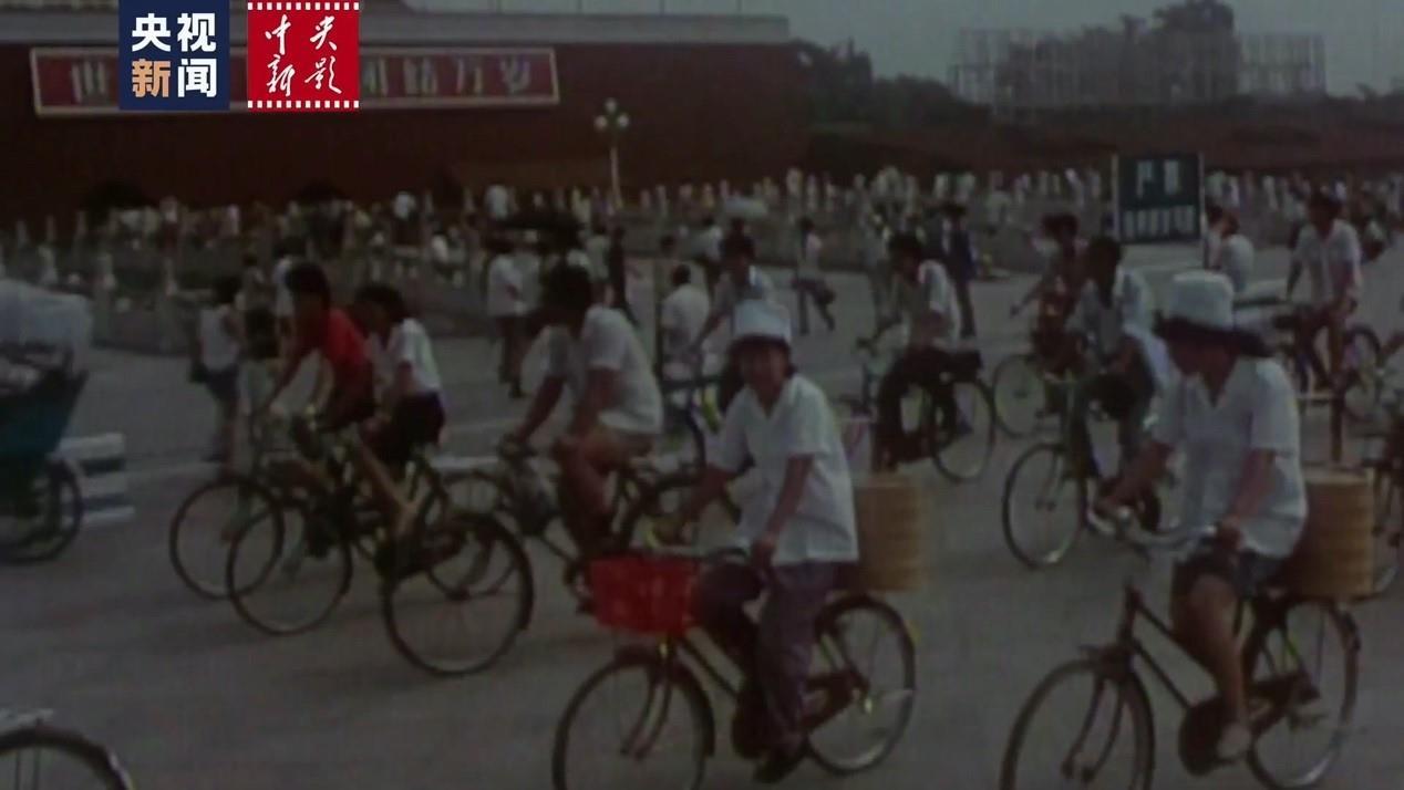 这组画面拍摄于1987年。这一年,我国自行车年产量达到3000万辆,接近世界总产量的二分之一。当时在首都北京的街头,随处可见自行车的身影。