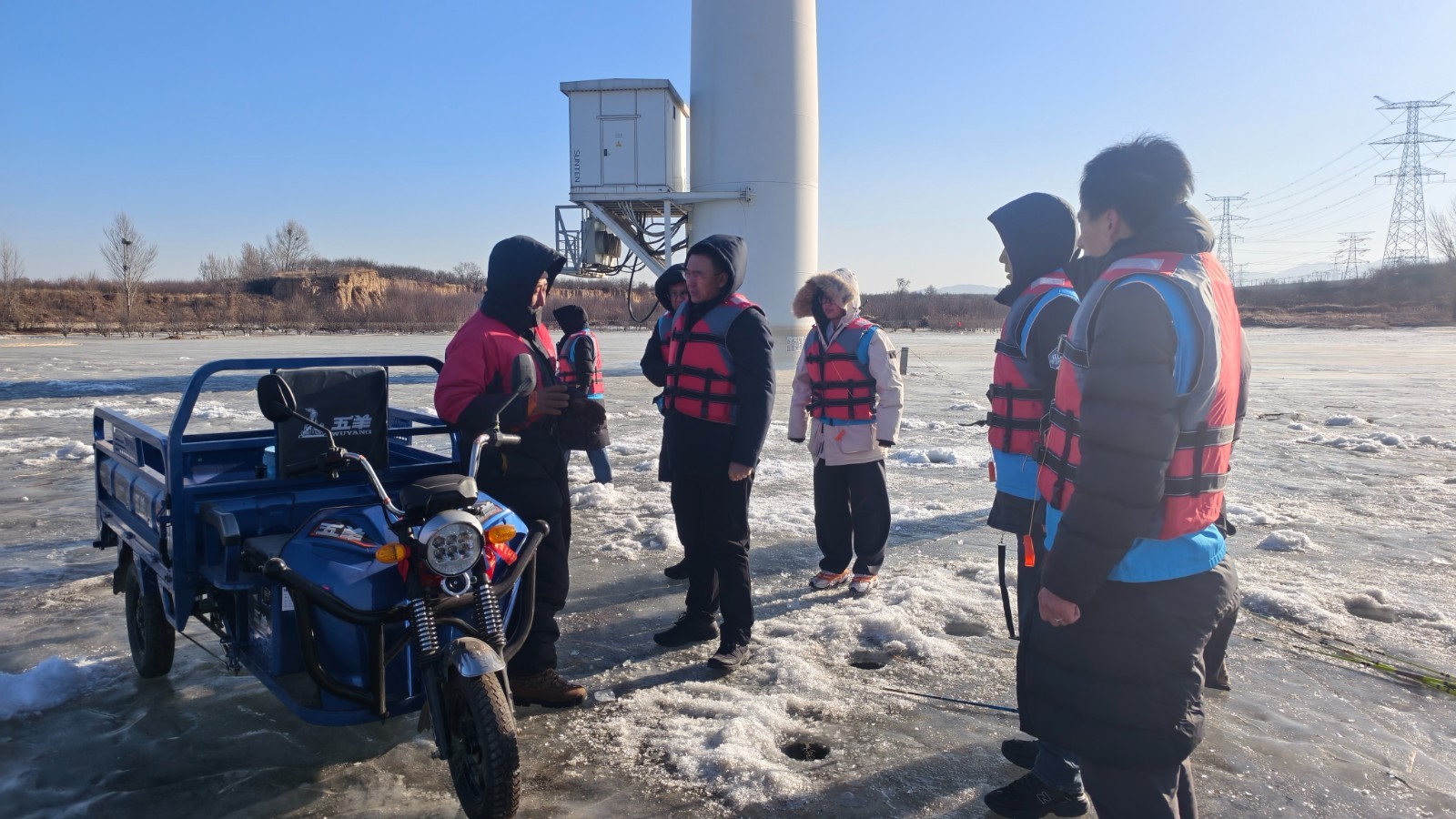 行动中,各成员单位紧密协作、各司其职,构建起“陆空联动、全域覆盖”的巡查管控网络。地面巡查组沿水库岸线逐区域、地毯式排查冰面情况,对发现的冰面行车漂移、凿冰垂钓、滑冰游玩等危险行为人员,第一时间上前耐心劝阻,详细讲解自然冰面厚度不均、暗藏冰裂缝等安全隐患,普及冬季冰上安全知识;空中巡查组则操控无人机对偏远、隐蔽的冰面区域进行全方位巡查,通过高空喊话方式开展安全提示,确保管控无死角、宣传无盲区。针对人员集中的重点区域,管理处当天新增安装3块“冰面危险 请勿上冰”警示提示牌,进一步强化安全警示效果,提醒群众远离危险区域。
