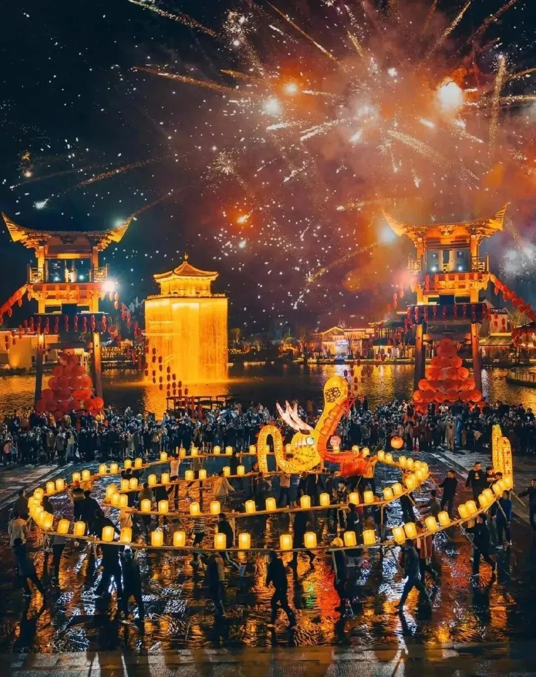 推荐理由:这里的年味充满了传统与热闹,每年春节都有非遗巡游,晚上龙灯烟火,包括板凳龙灯游弋、鱼灯巡游、民俗表演、打铁花、烟花秀等,每一帧都是绝美画面,尽显传统文化魅力!