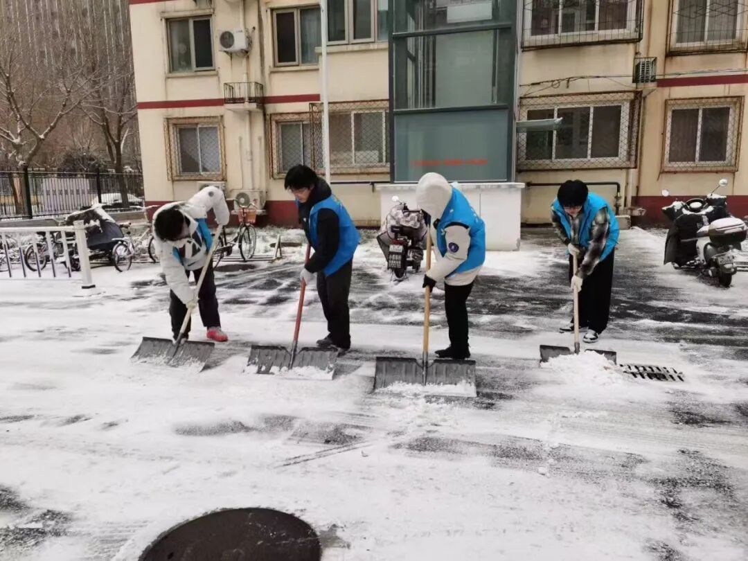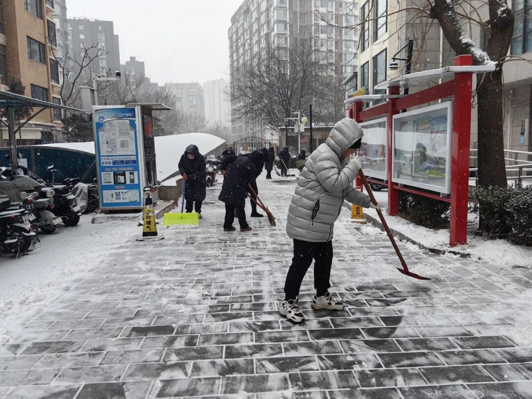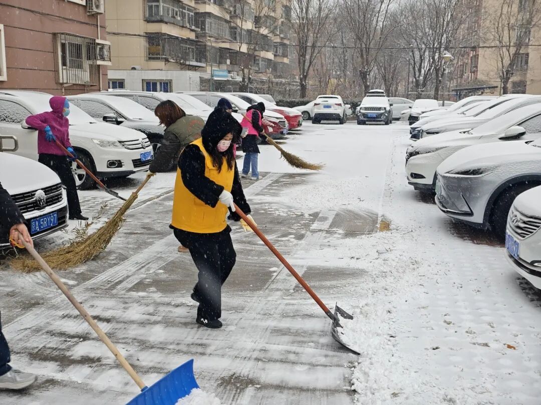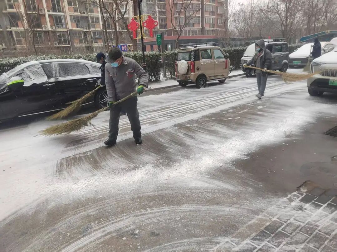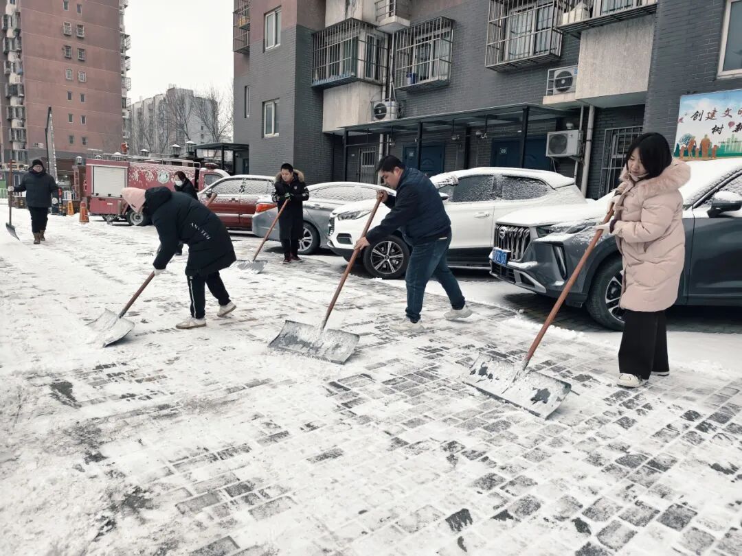 12日中午雪势渐起后,街道迅速启动扫雪铲冰应急预案,凝聚相关科室、社区、物业及辖区志愿者等各方力量,针对主次干道、背街小巷、学校、社区院落及沿街商户门前等公共区域,全力开展清雪行动。