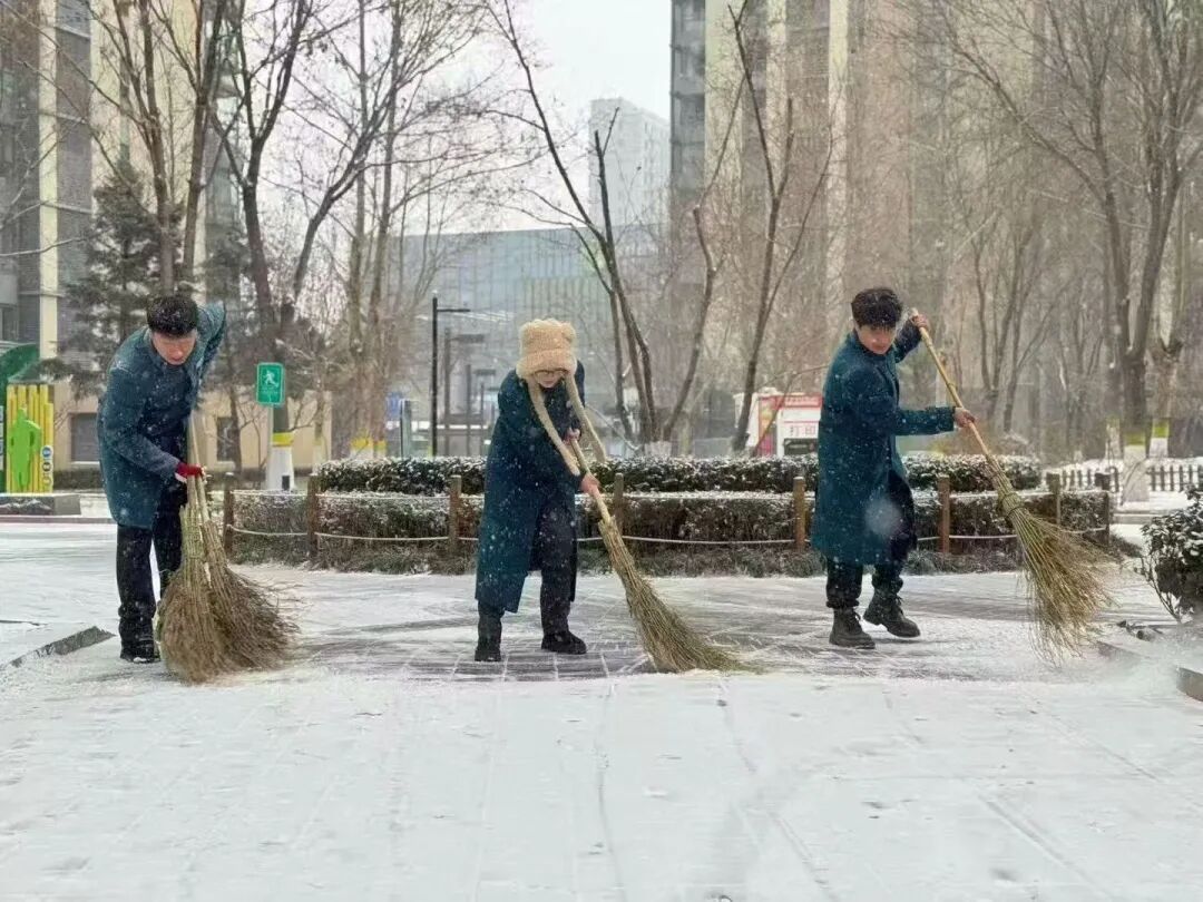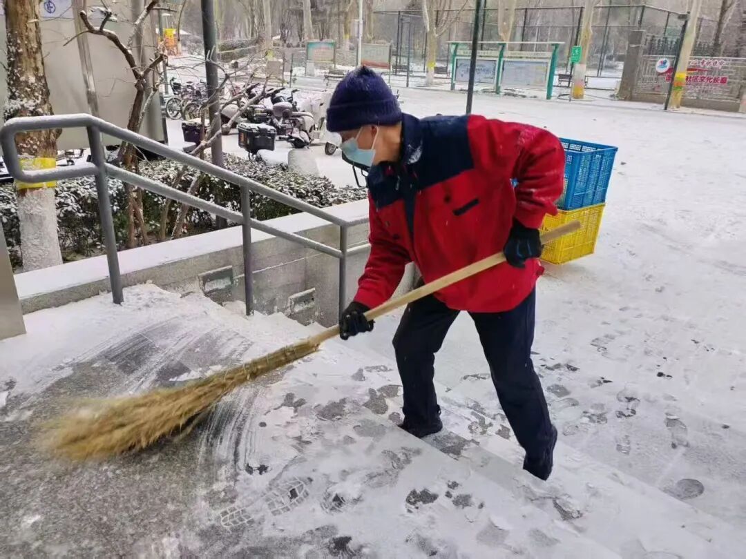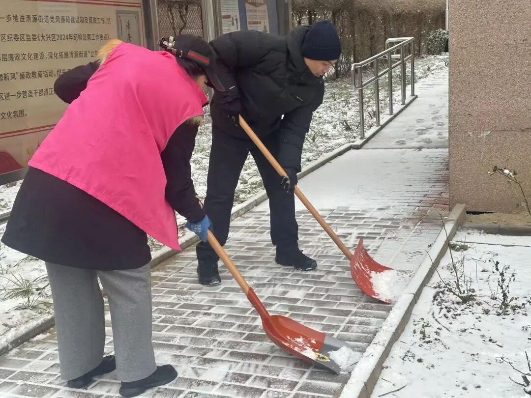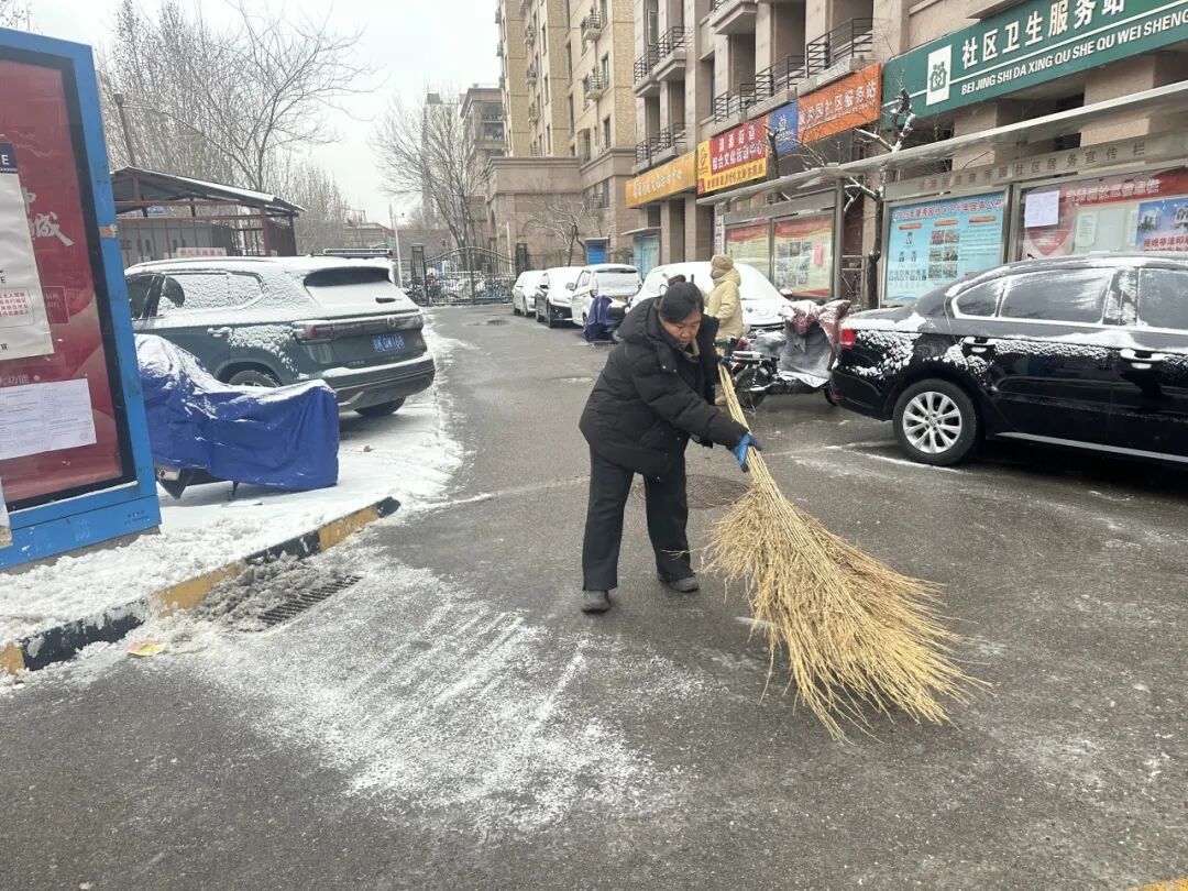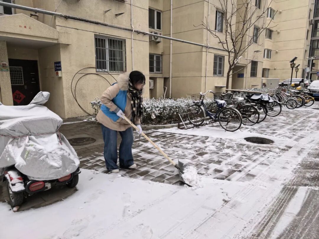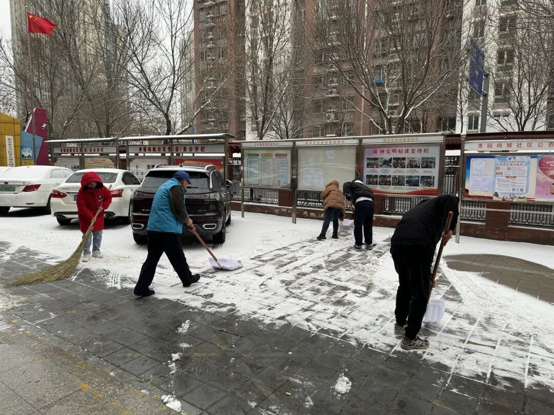 12日中午雪势渐起后,街道迅速启动扫雪铲冰应急预案,凝聚相关科室、社区、物业及辖区志愿者等各方力量,针对主次干道、背街小巷、学校、社区院落及沿街商户门前等公共区域,全力开展清雪行动。