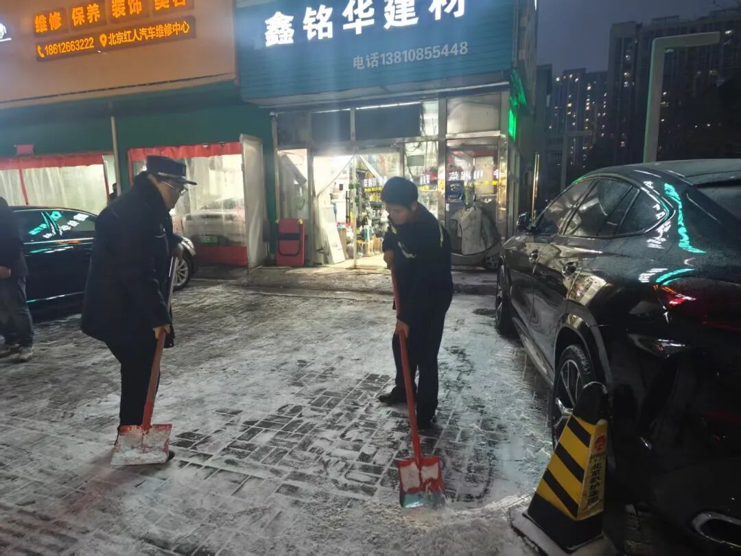 同时,为做好辖区“门前三包”工作,街道综合行政执法队深入辖区沿街商户巡视检查,积极动员引导并协助沿街各单位、商户落实落细“门前三包”扫雪铲冰工作,确保“门前雪”清理到位,尽量减少地面积水和结冰。